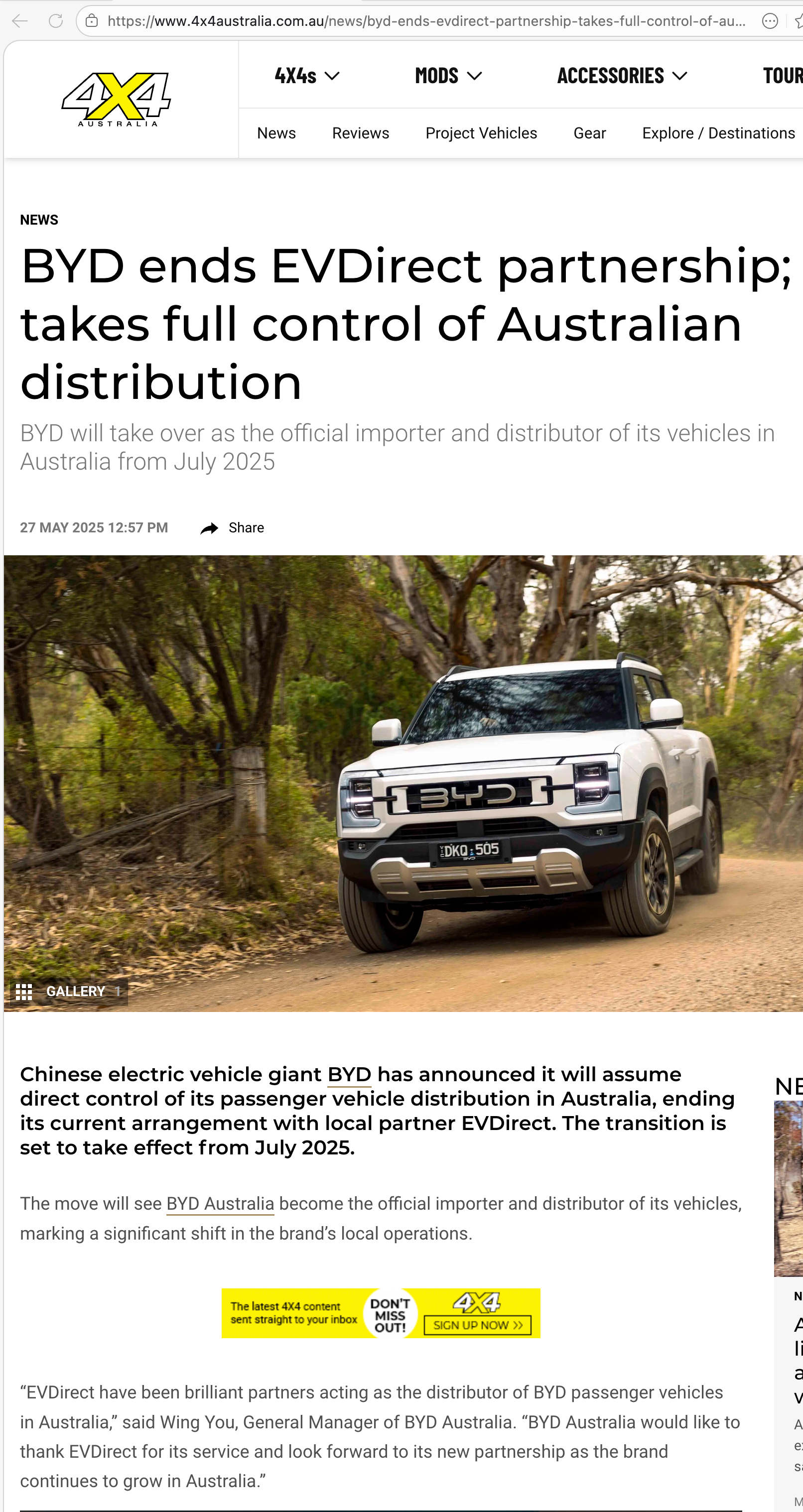 基本就是这样个事儿,这种事儿中国车企的出海大哥比亚迪去年刚经历过(图5),虽然图2的博主认为比亚迪是平稳过渡没有经历纠纷,但是处理路径都差不多,可以看看大哥是怎么给小弟们打的样。比亚迪在澳洲最初由 EVDirect 负责进口和分销。2025年,比亚迪总部决定提前终止与 EVDirect 的分销协议,分为几步走:1.收回分销权。将比亚迪澳洲的业务改由 BYD Australia 直接负责车辆的进口、分销、零部件供应和品牌管理。2.引入当地大佬合作。在零售上,期间比亚迪引入了当地的有规模的零售商接盘,让全澳最大的汽车经销商集团 Eagers Automotive 占股 80% 成立合资公司,承接原有的零售和维修网络,迅速稳定了现有的服务网点。3.服务收回到直营渠道。2025年底,比亚迪逐步减少对第三方修理厂(如 Mycar)的依赖,要求车辆回到具备全套技术支持的 BYD 品牌专营店进行维保,以提升服务质量和配件响应速度。4.对消费者无缝衔接。在渠道切换过程中(例如某些门店从 EVDirect 直管转为 BYD Australia 直管),比亚迪采取了退款再重下订单、对受影响的车主补偿售后代金券等方式,确保“交车时间不变、条款不变、促销优惠不变”。