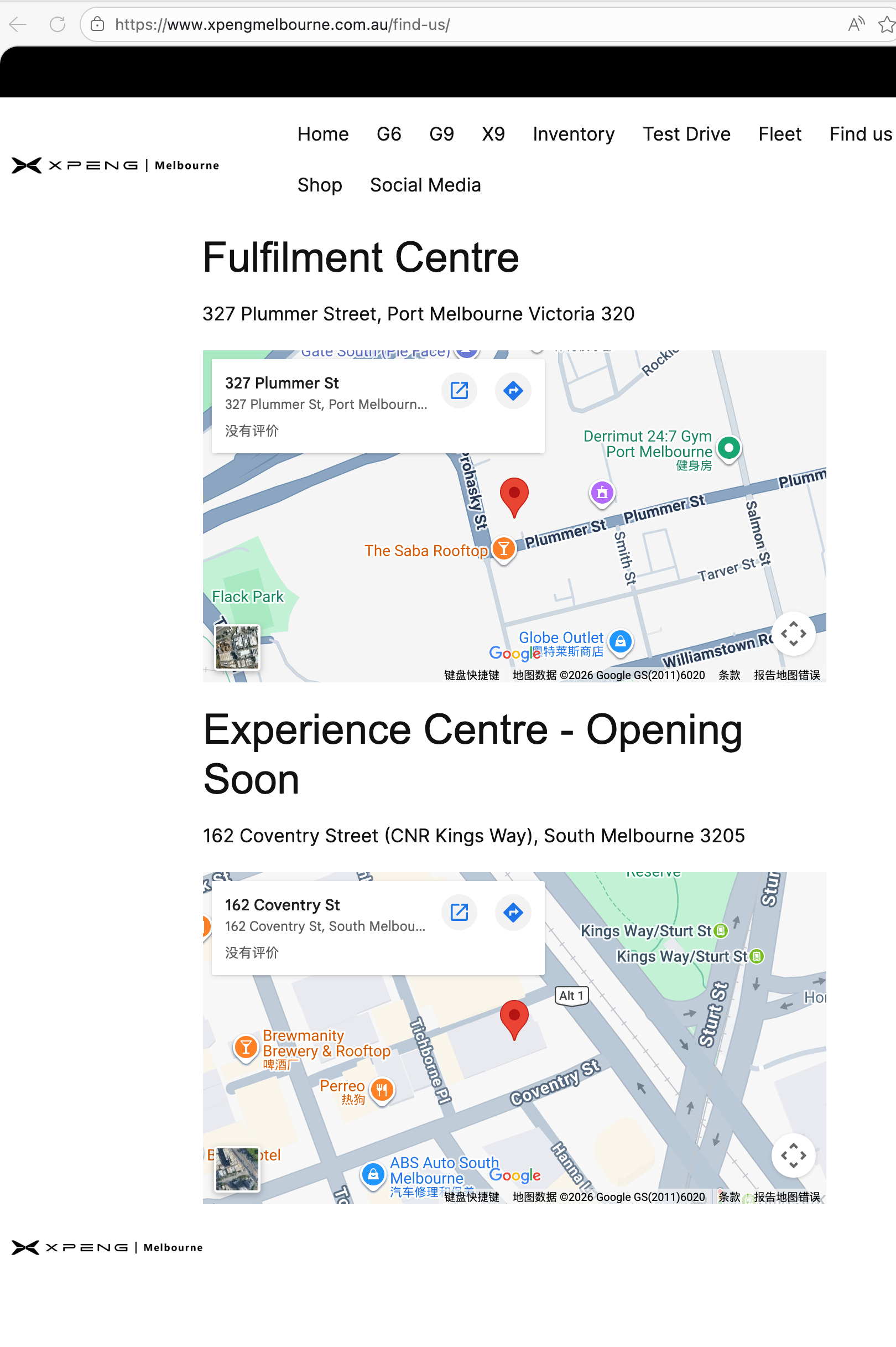 有比亚迪珠玉在前,借鉴比亚迪的高效策略,我相信小鹏也能妥善处理这个问题,比如小鹏已在墨尔本设立本地总部(图6),负责自身市场营销和服务管理。至于澳洲车主的售后和订金,澳洲对于消费者权益保护非常严格和完善,小鹏除非不想在澳洲卖车了,否则一定会妥善处理的,何况还有新车等待发布呢。