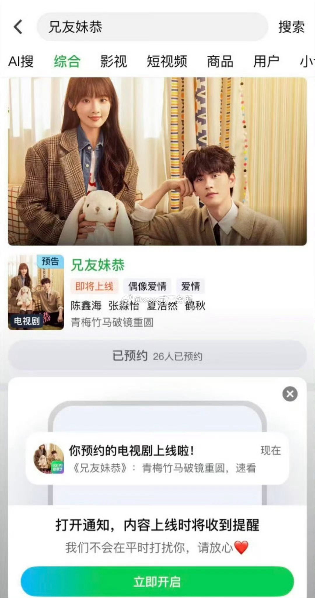 陈鑫海 张淼怡《兄友妹恭》分销到爱奇艺了,即将上线