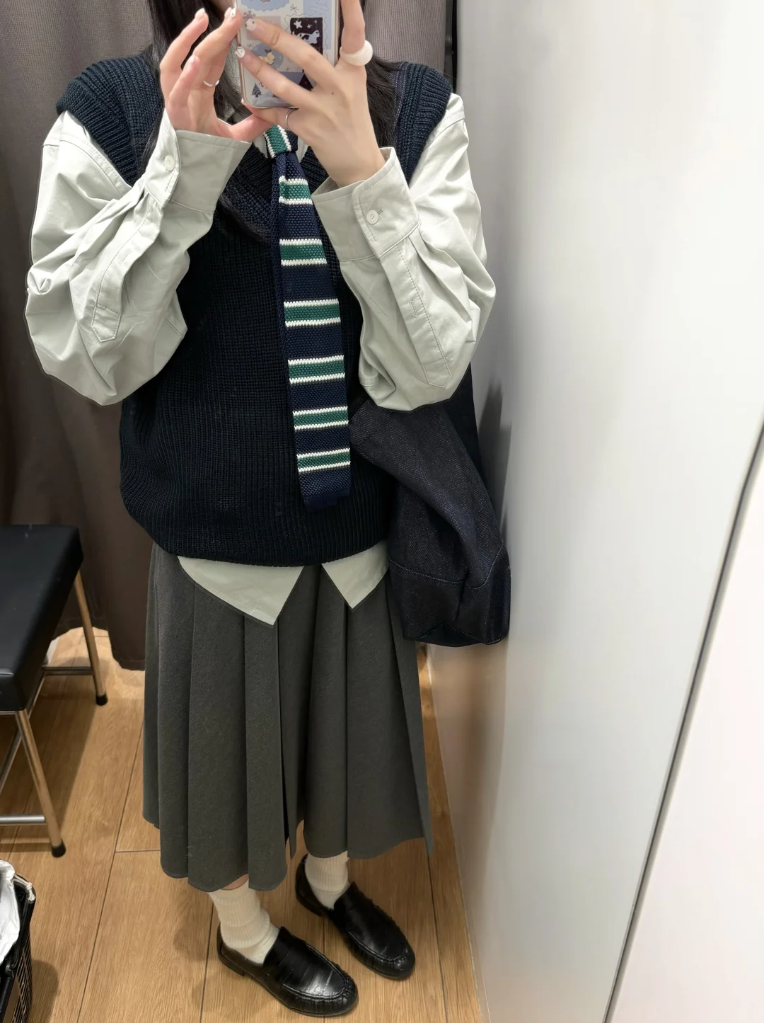 优衣库早春叠穿这一块💙日系少女感好乖巧!