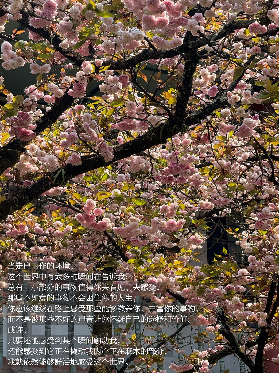 当走出工作的环境,这个世界有太多的瞬间在告诉我:总有一小部分的事物值得你去看见、去感受,那些不如意的事物不会困住你的人生,你应该继续在路上感受那些能够滋养你、丰富你的事物,而不是被那些不好的声音让你怀疑自己的选择和价值。只要还能感受到某个瞬间触动我,还能感受到它正在撬动我内心正在麻木的部分,我就依然能够鲜活地感受这个世界。