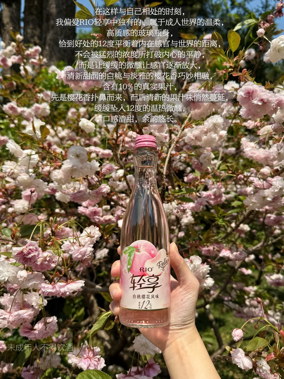 在这样与自己相处的时刻,我偏爱RIO轻享中独有的、属于成人世界的温柔,高质感的玻璃瓶身,恰到好处的12度,平衡着内在感官与世界的距离,不会因猛烈的浓度而打破内心的平静,而是缓缓的微醺将感官逐渐放大。清新甜润的白桃与淡雅的樱花香巧妙相融,10%的真实果汁含量还原本味。先是樱花香扑鼻而来,而后清新的果汁味悄然蔓延,让人缓缓坠入12度的温热微醺,口感清甜,余韵悠长。