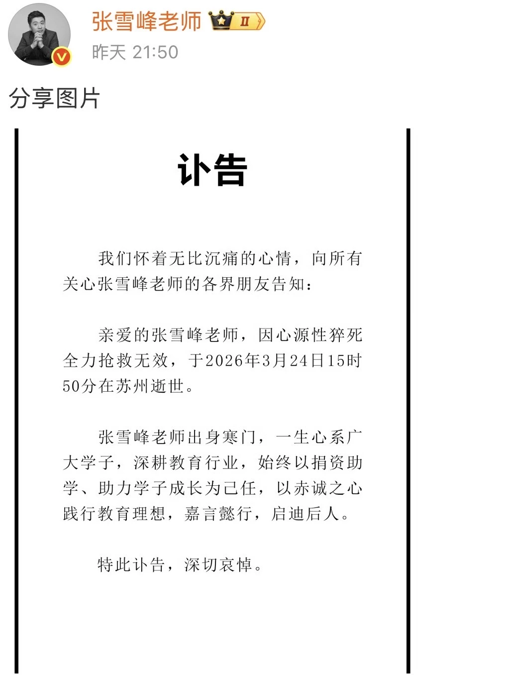 刷到张雪峰离世的消息,心里堵了很久。