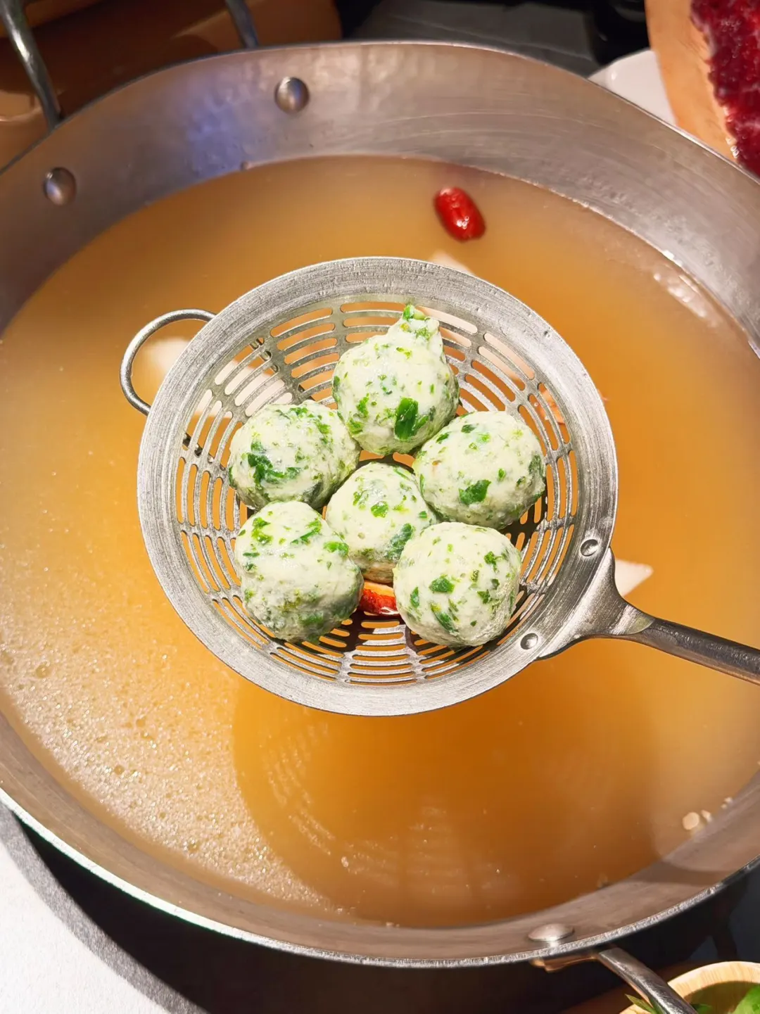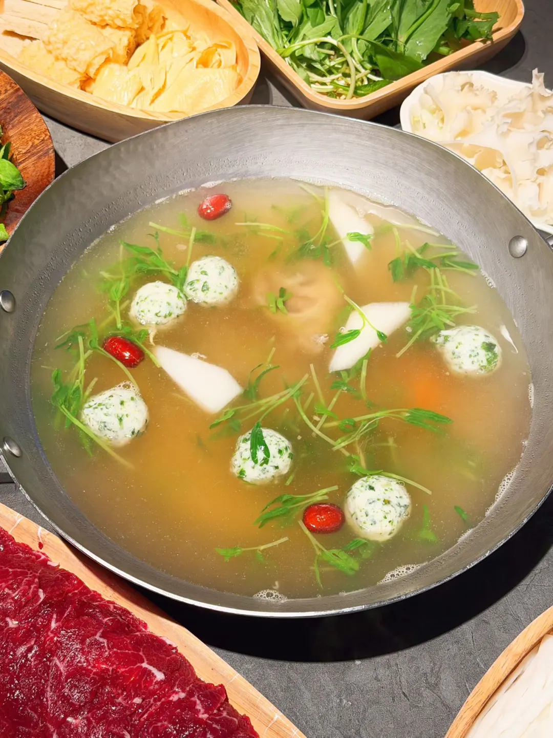 锅底是春芽鱼丸原汤锅,