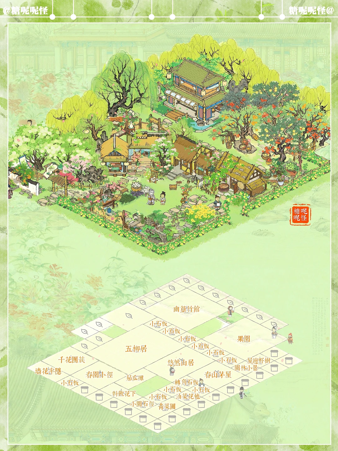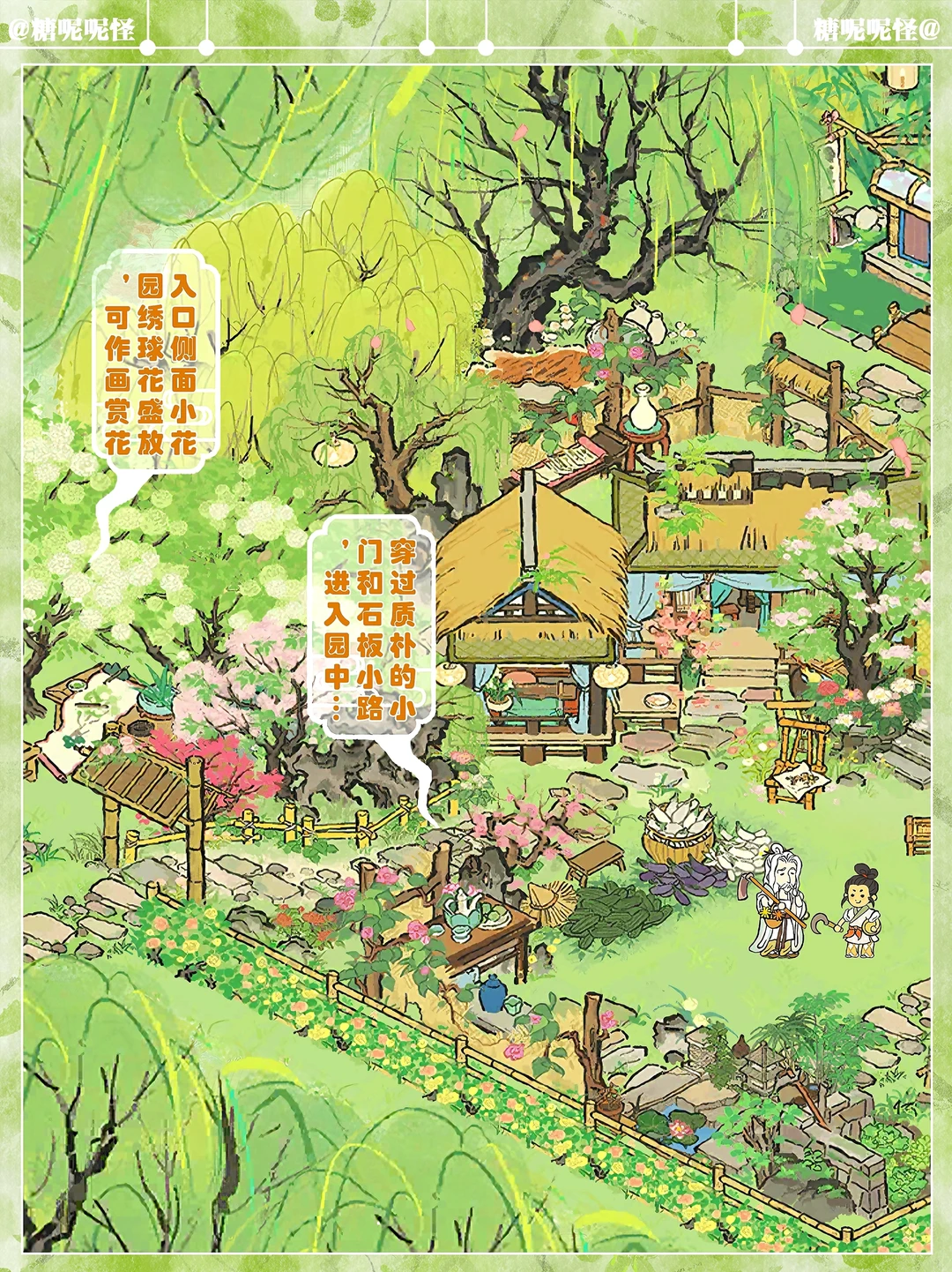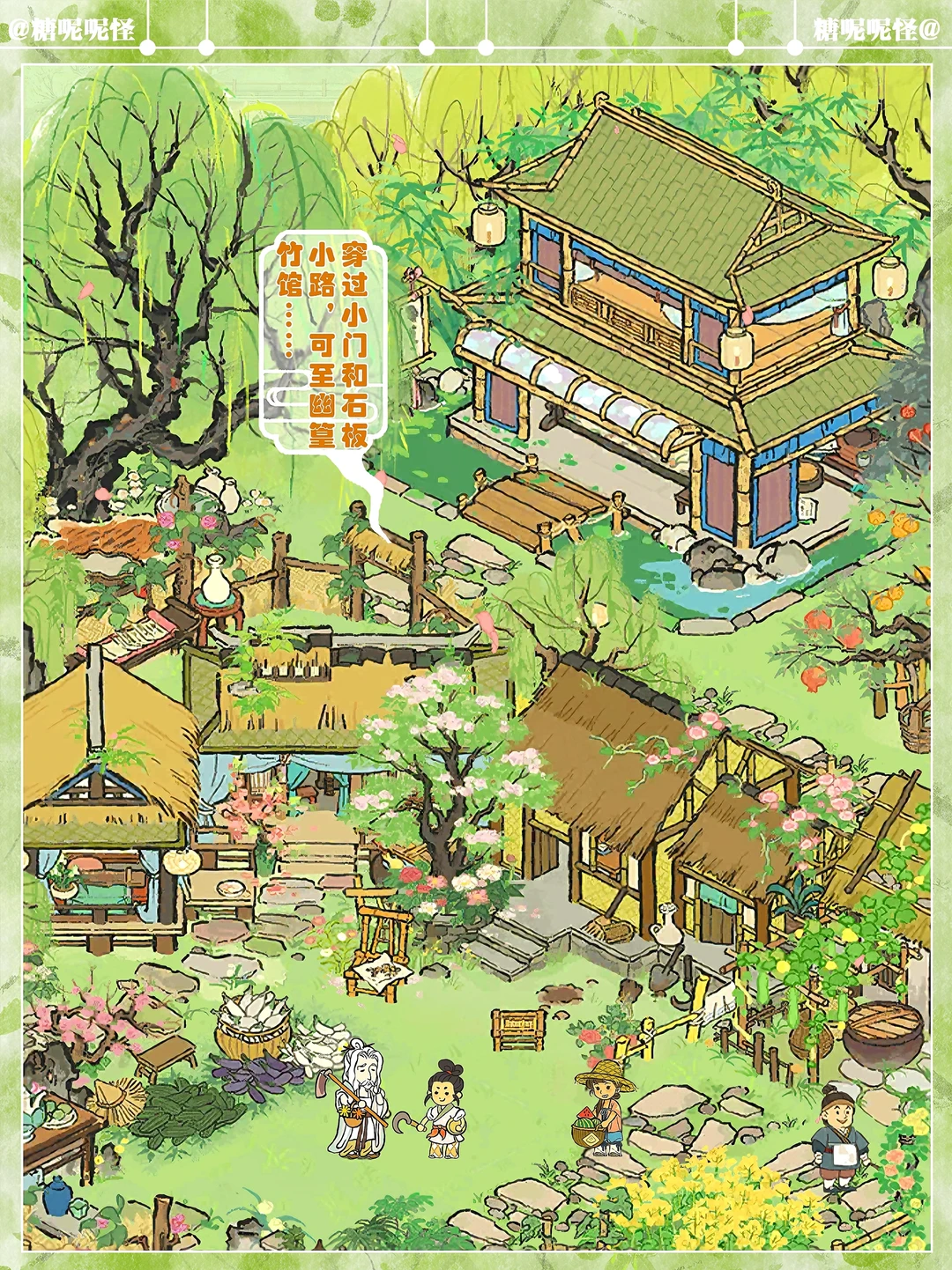 🌿建筑:五柳居|幽篁竹馆|春园小径|春山茅屋|悠然山居|千花团簇|墙花半隐|对饮花下|青菜圃|果园|茄瓜摊|小石板|转角石板|园林小景|屋边野树|油菜花田|小园石径