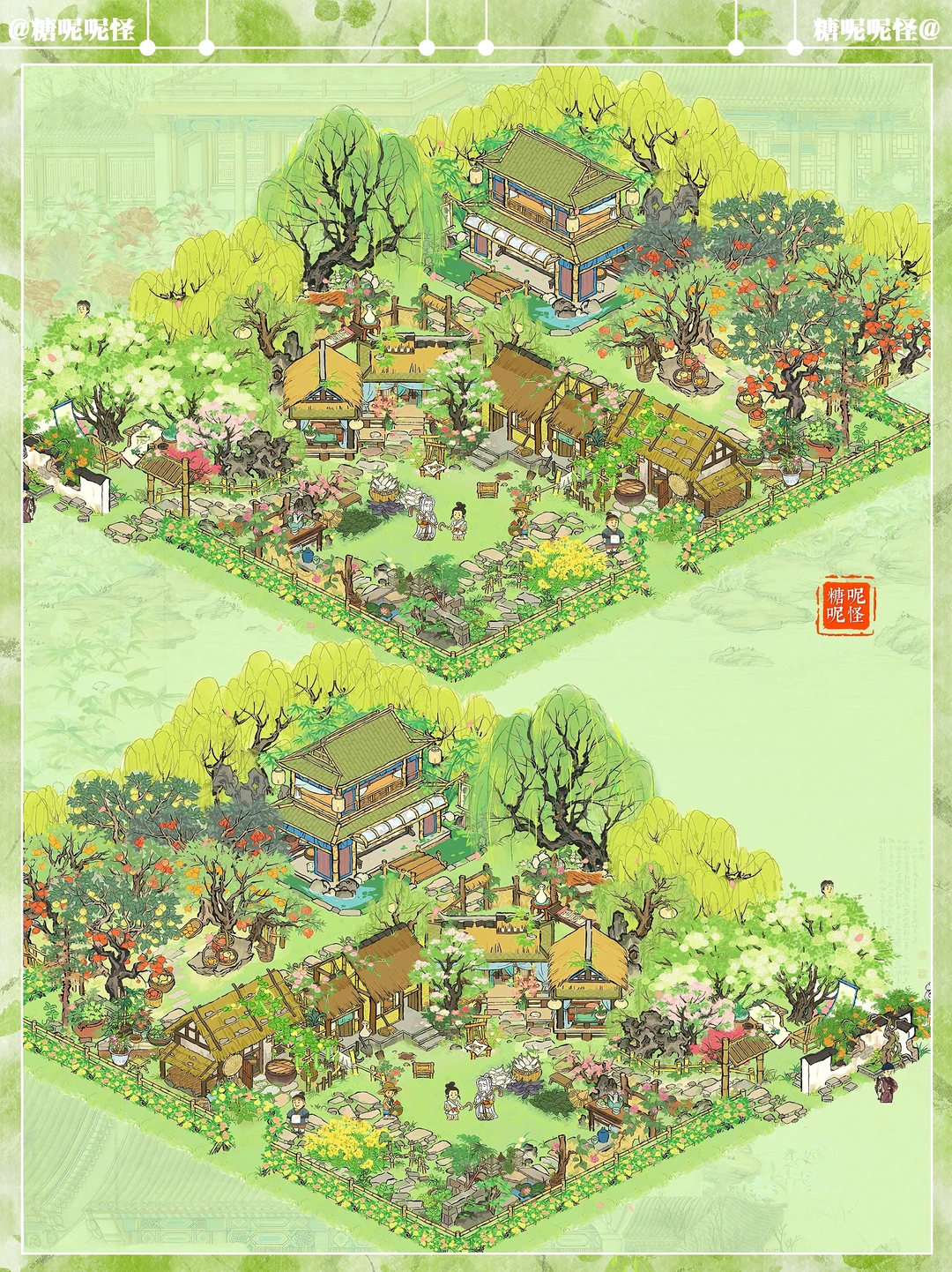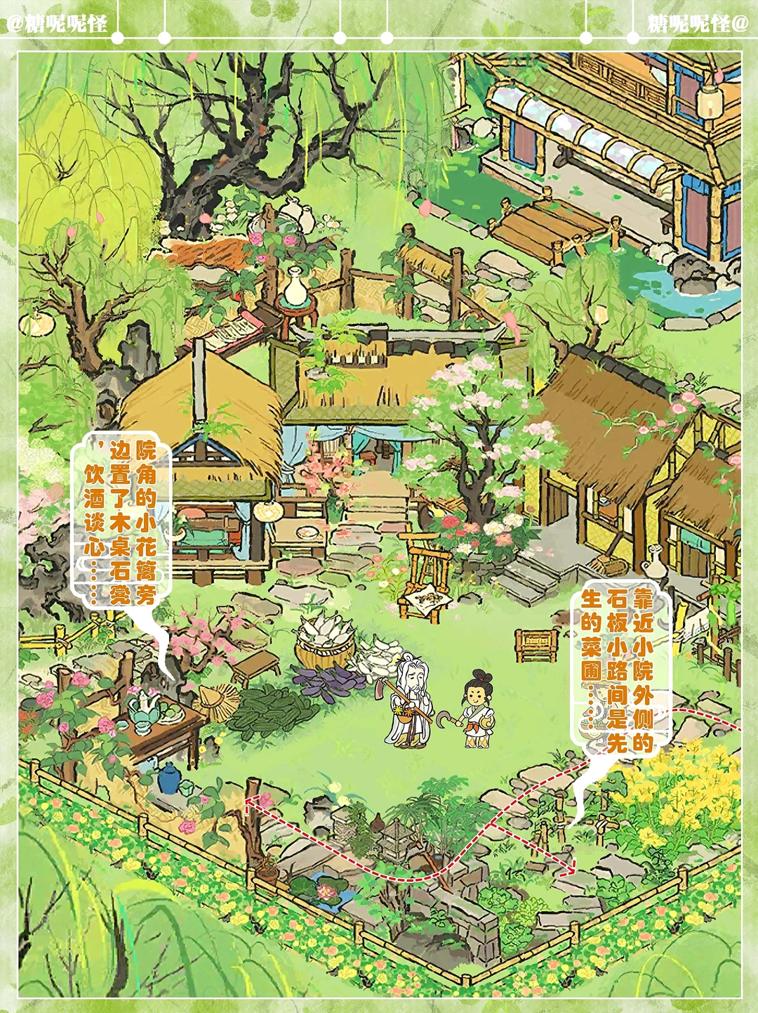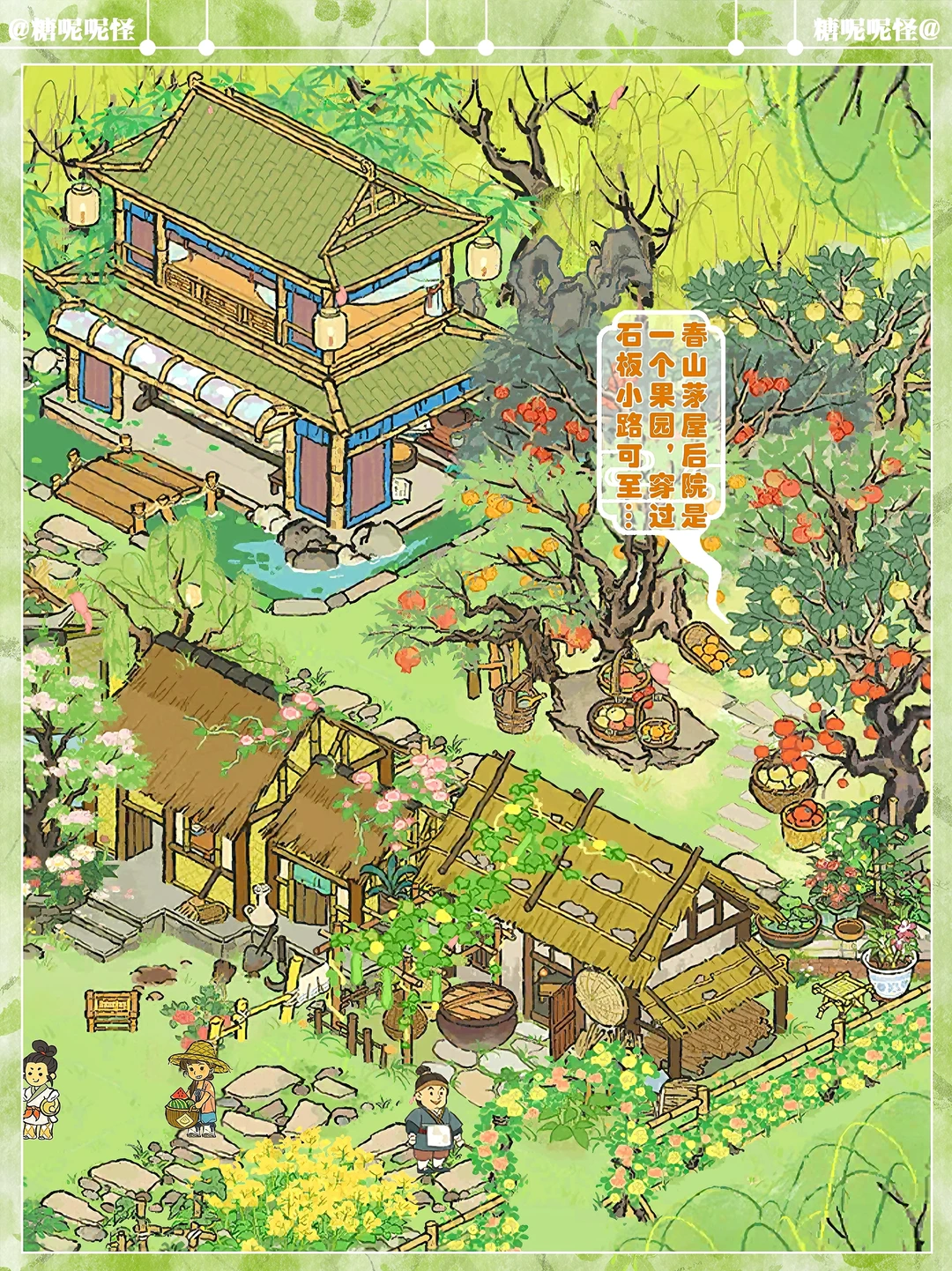 🌿建筑:五柳居|幽篁竹馆|春园小径|春山茅屋|悠然山居|千花团簇|墙花半隐|对饮花下|青菜圃|果园|茄瓜摊|小石板|转角石板|园林小景|屋边野树|油菜花田|小园石径