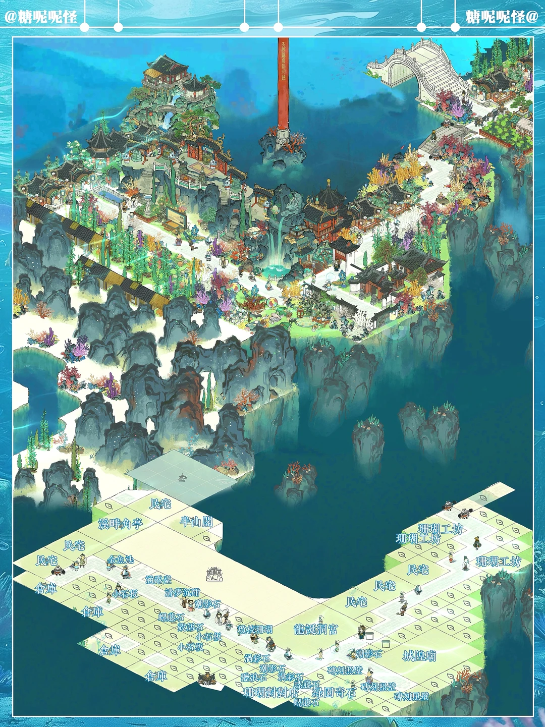 🪸地点:珊瑚台+雅乐台 🪸建筑:龙诞洞宫|溪畔角亭|珊瑚工坊|城隍庙|珊瑚对对店|临溪阁|半山阁|琼枝珊瑚