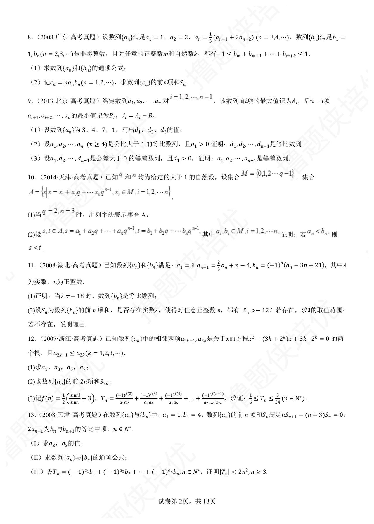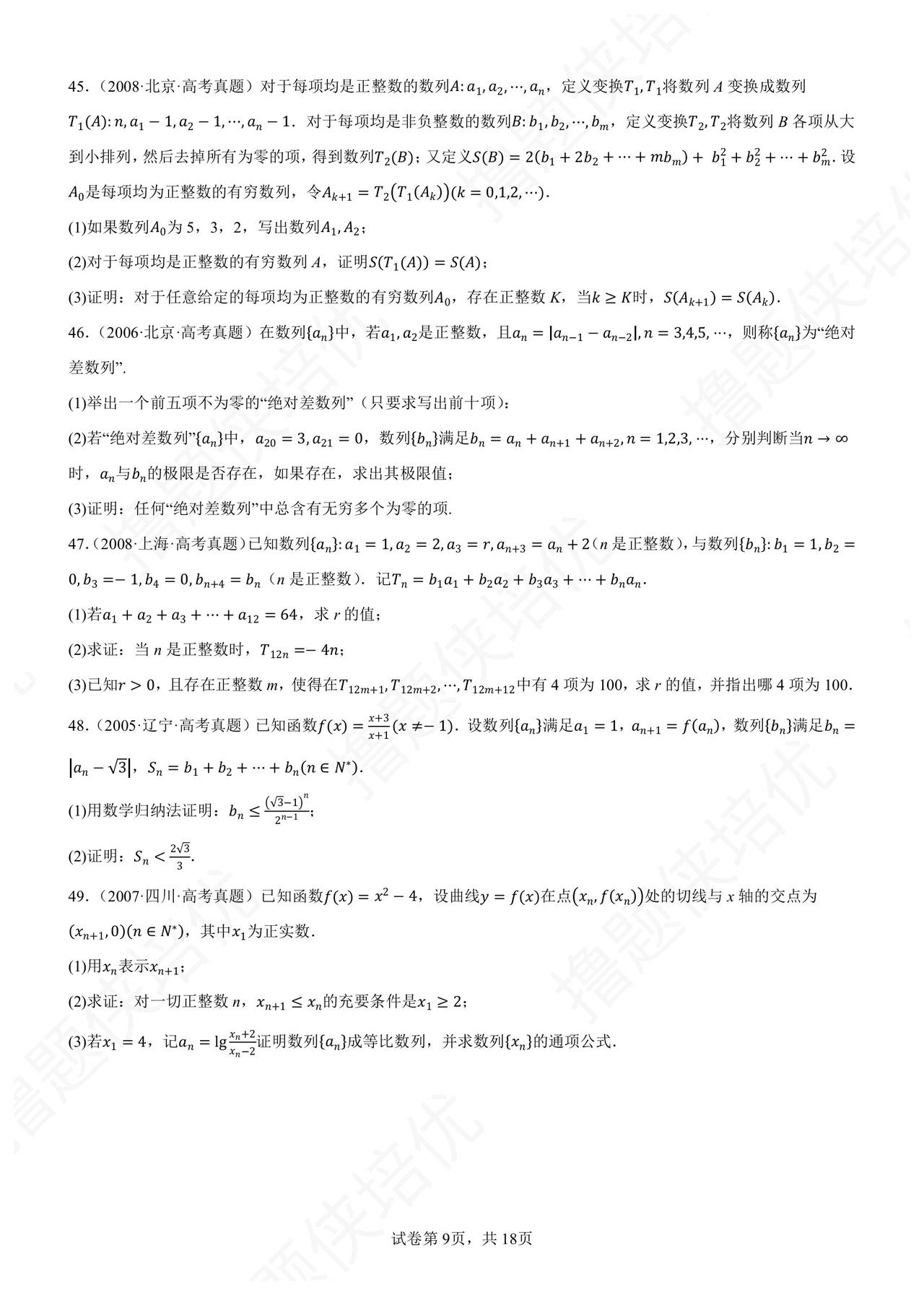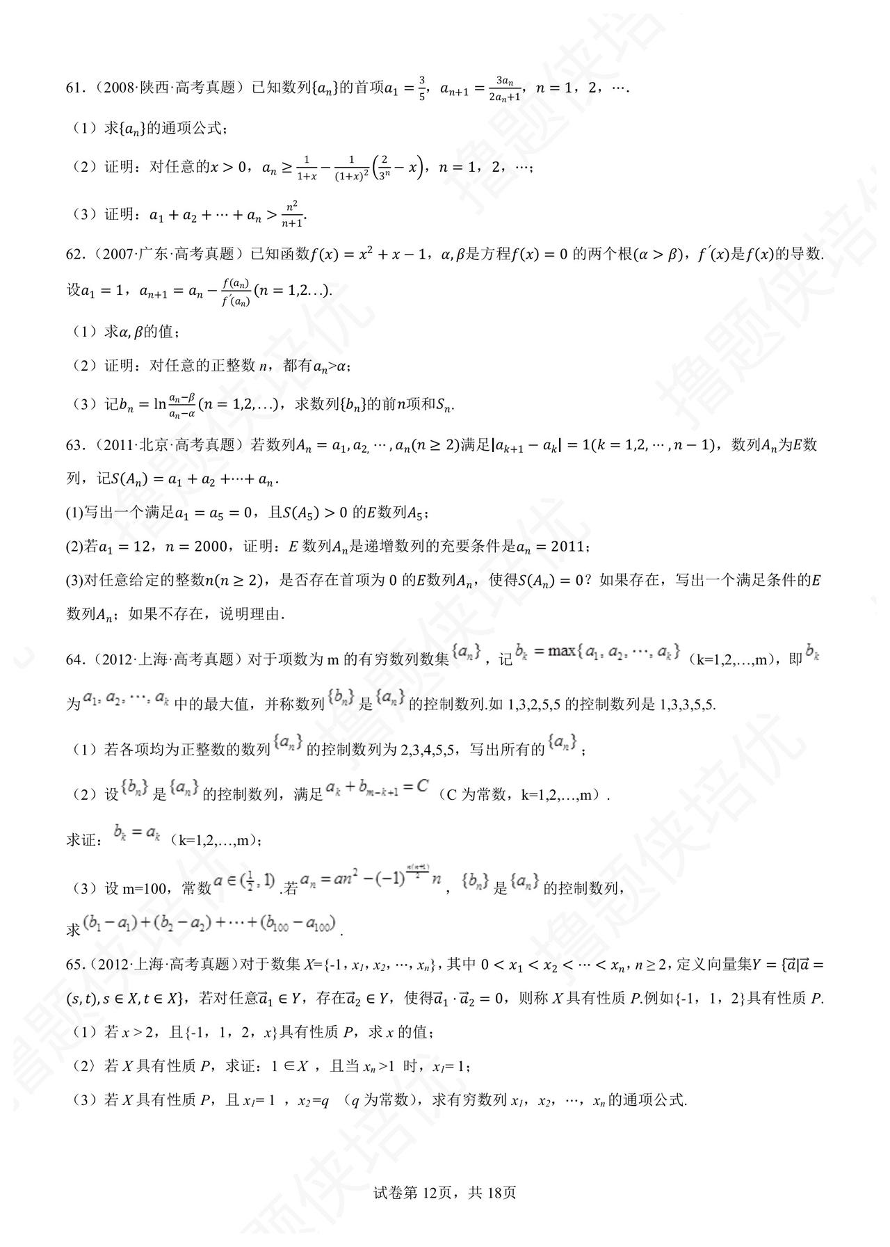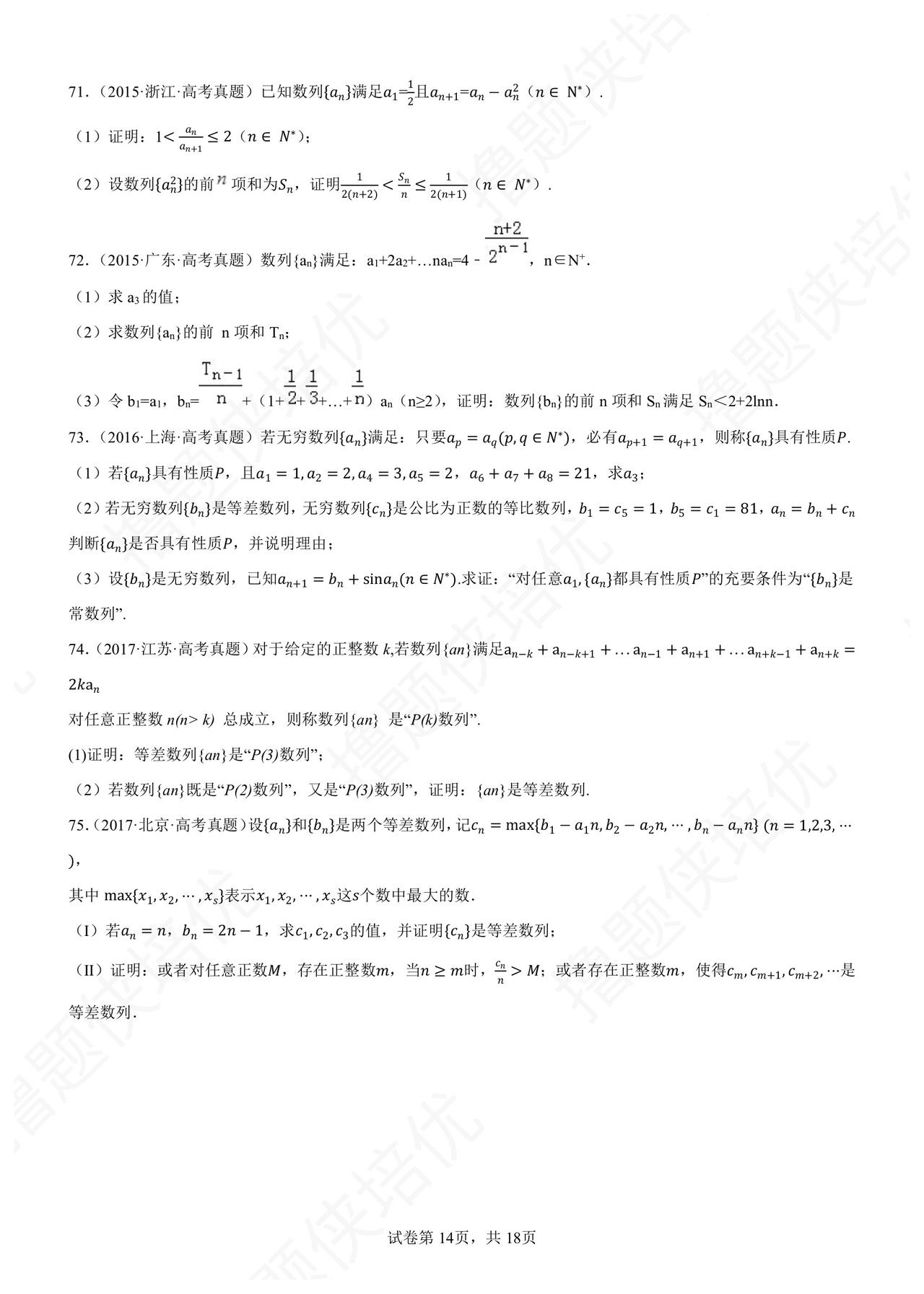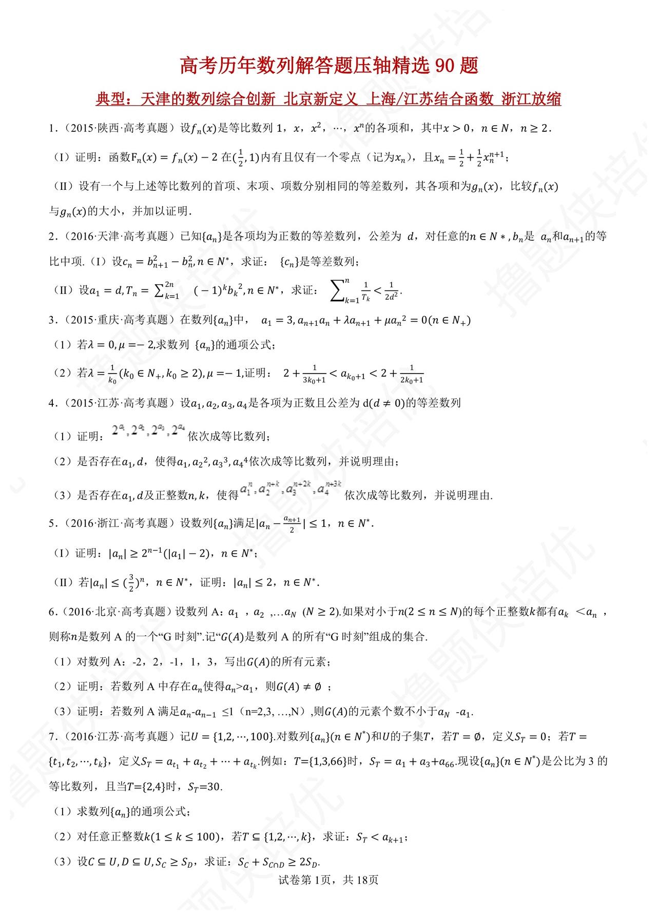 历年高考数列压轴题精选 90 题 数列数列妖魔地方卷 精选各地方卷典型: 天津的数列综合创新 北京集合数列新定义 上海/江苏数列结合函数 浙江数列递推迭代放缩