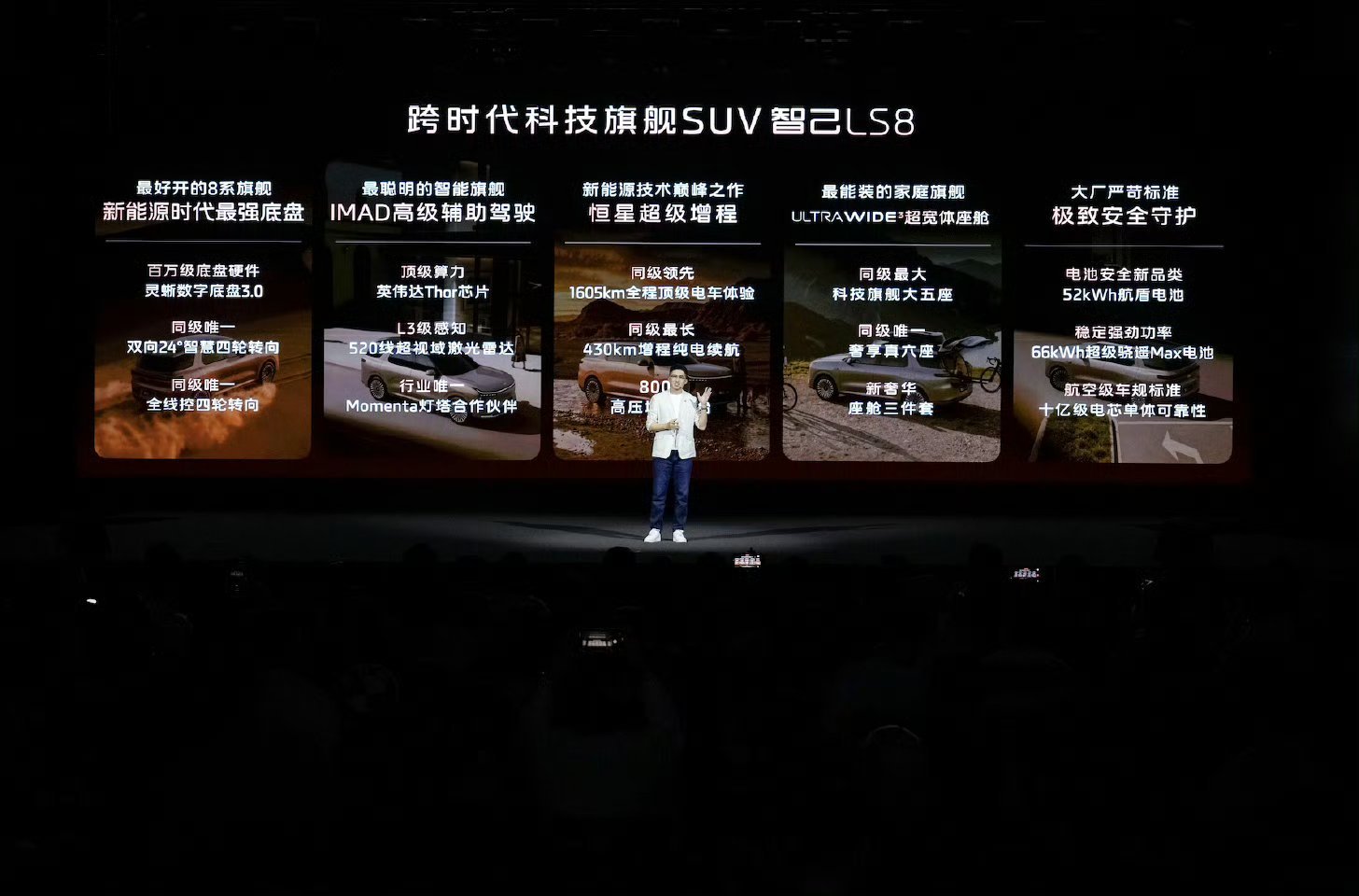 智己LS8震撼预售25.98万元起智己LS8定位中大型增程SUV,预售25.98万起,轴距3060mm,提供5/6座布局。全系标配800V平台、恒星增程与灵蜥线控底盘,搭载24°后轮转向,操控灵活。配备激光雷达、英伟达Thor芯片与千问大模型,智驾与座舱智能化拉满。纯电续航最高约430km,综合续航超1500km,空气悬架+CDC加持,兼顾舒适与性能!
