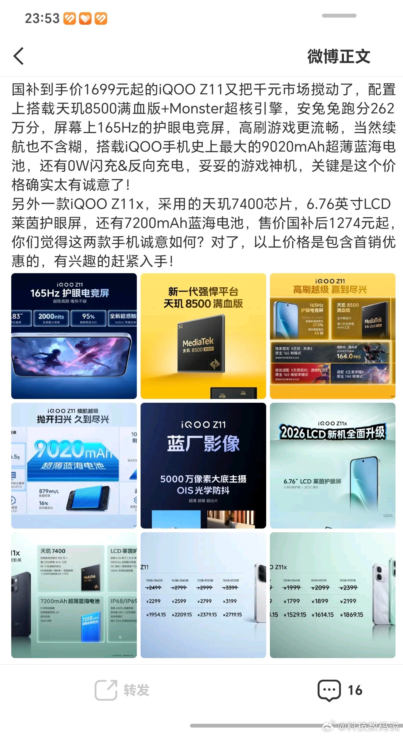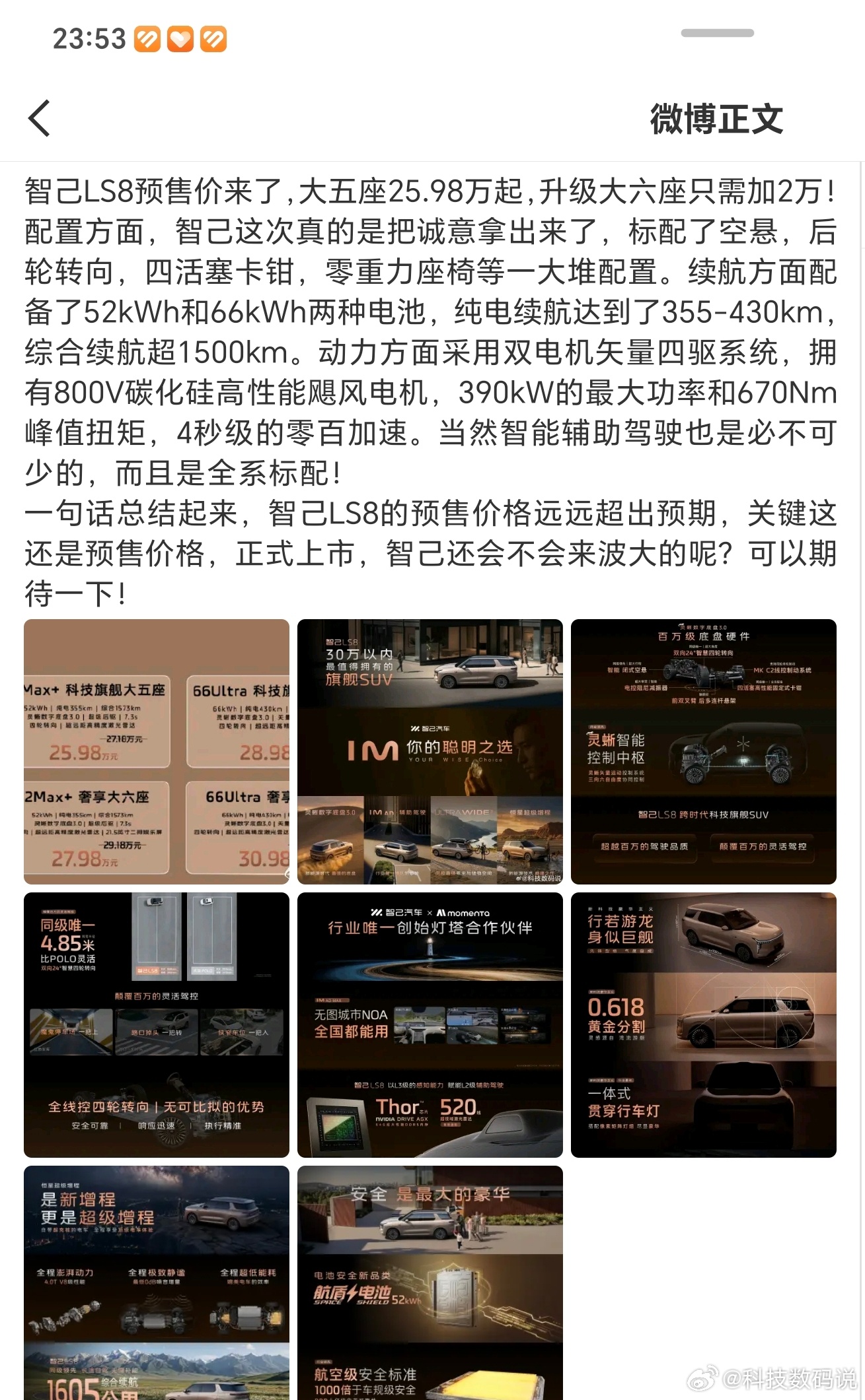 今晚四场发布会总结都被夹了截图给大家看看国补后1699元起的165Hz高刷+9020mAh iQOO Z1115.19万元起有第二代刀片电池和闪充的宋Ultra EV6.58万元就能开回家的零跑A1025.98万元起预售的智己Ls8