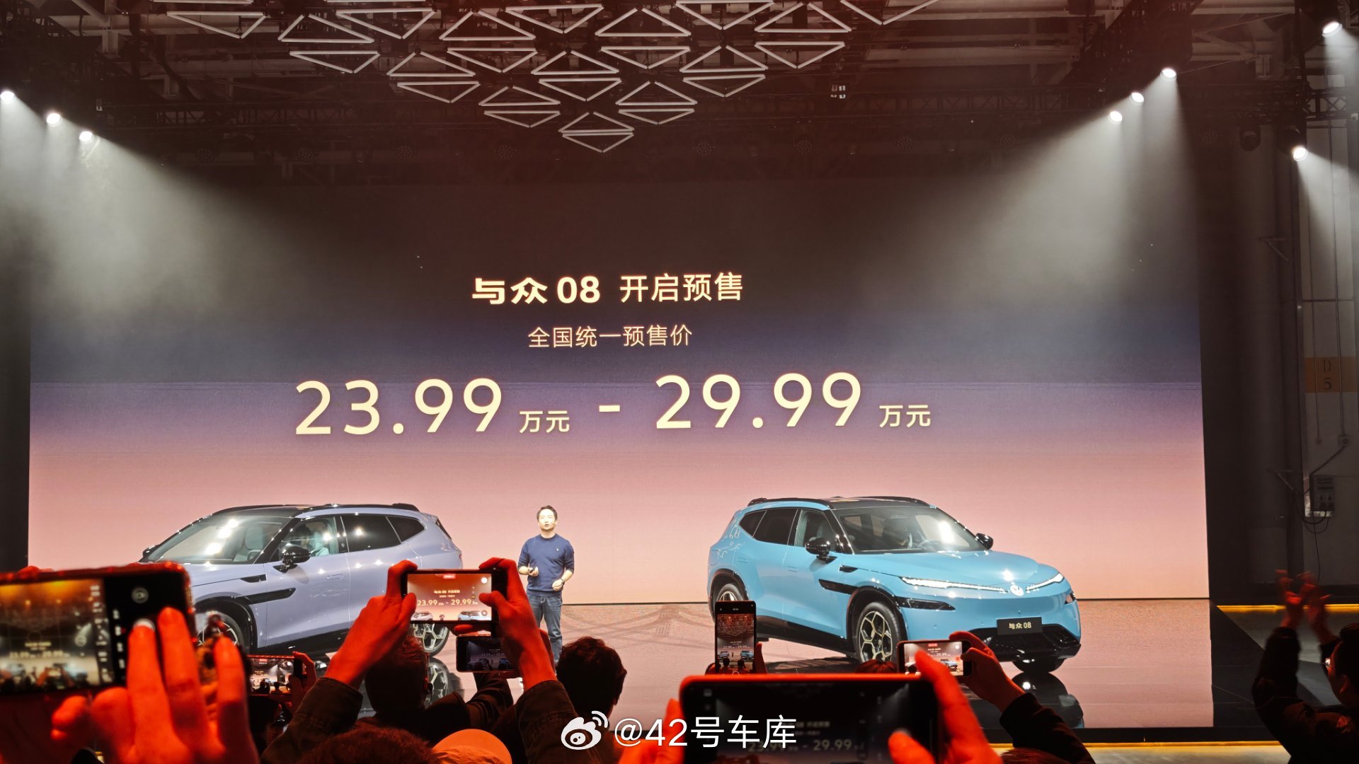 与众 08 的预售价公布了,23.99-29.99 万,这个价格比 26 款的小鹏 G9 还低,但具体会有几个配置还未公布。按照预售价高于实际售价的玩法来看,应该还有空间,多个配置之间应该会在电池容量、空悬上拉开差距,但图灵芯片会是标配,也就是说小鹏的 VLA 2.0 肯定是会有的,综合来看这个预售定价可以说是很有诚意了。