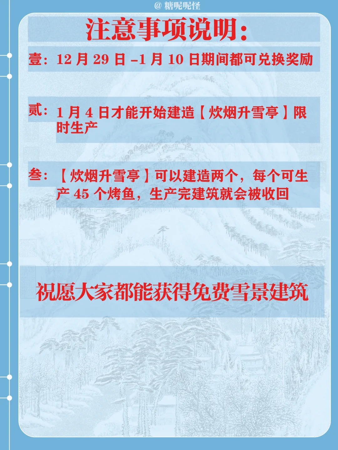 【烤鱼】获取及【雪景建筑奖励兑换】攻略+注意