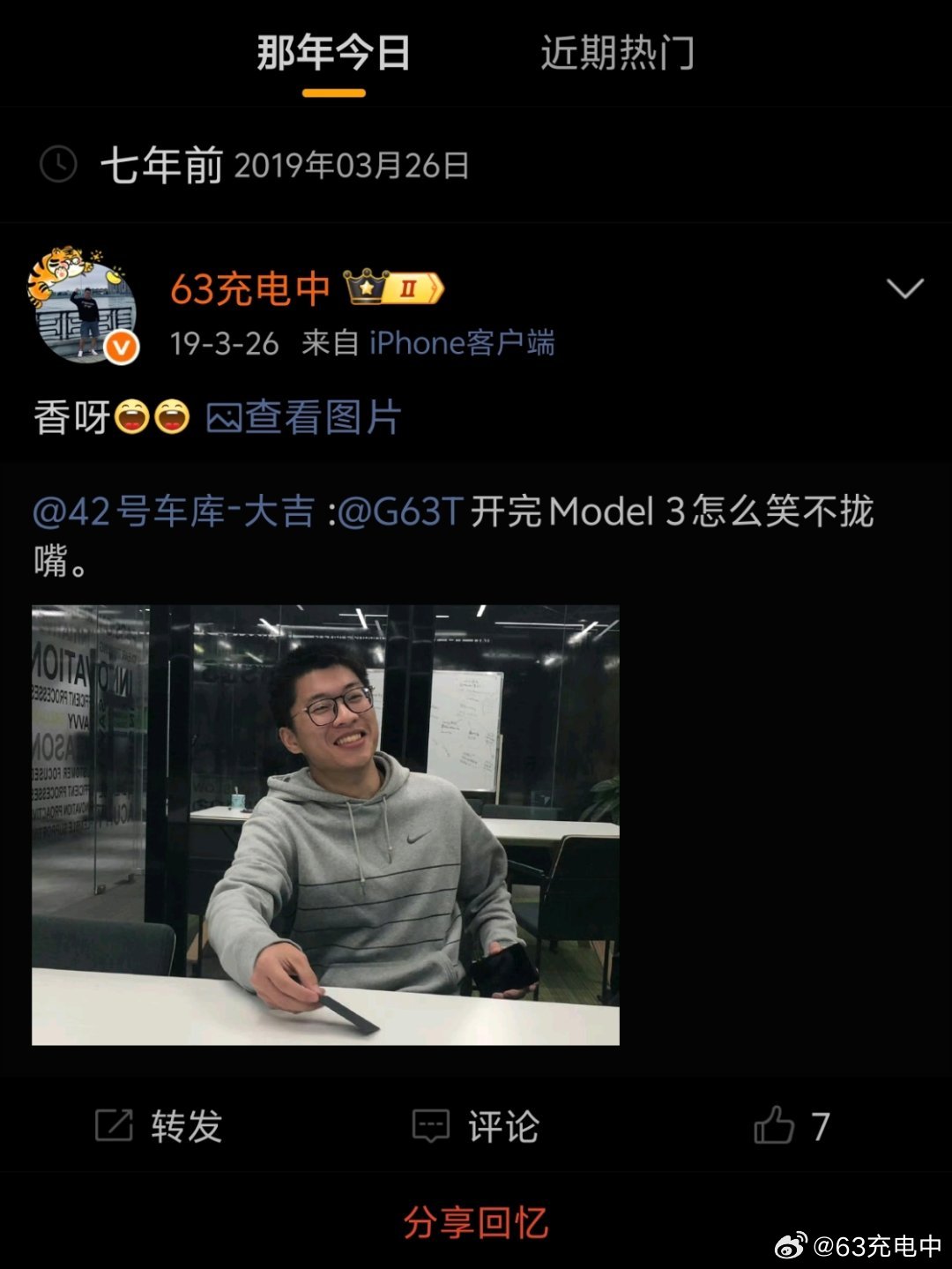 damn,微博那年今日帮我回忆起了第一次开特斯拉Model3,已经是7年