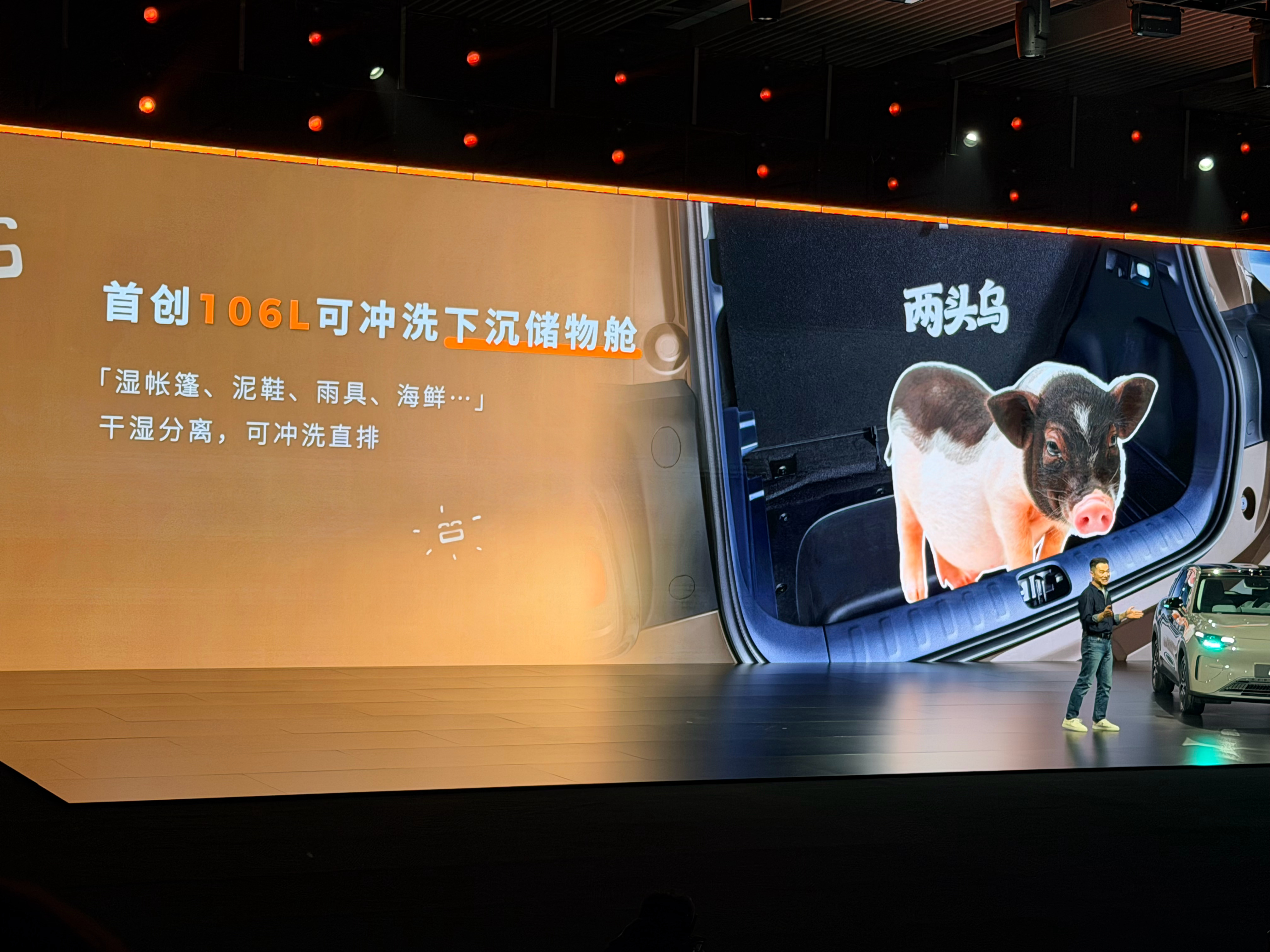 零跑 A10 后备箱的下沉深坑预留了排水口,可以直接水洗。