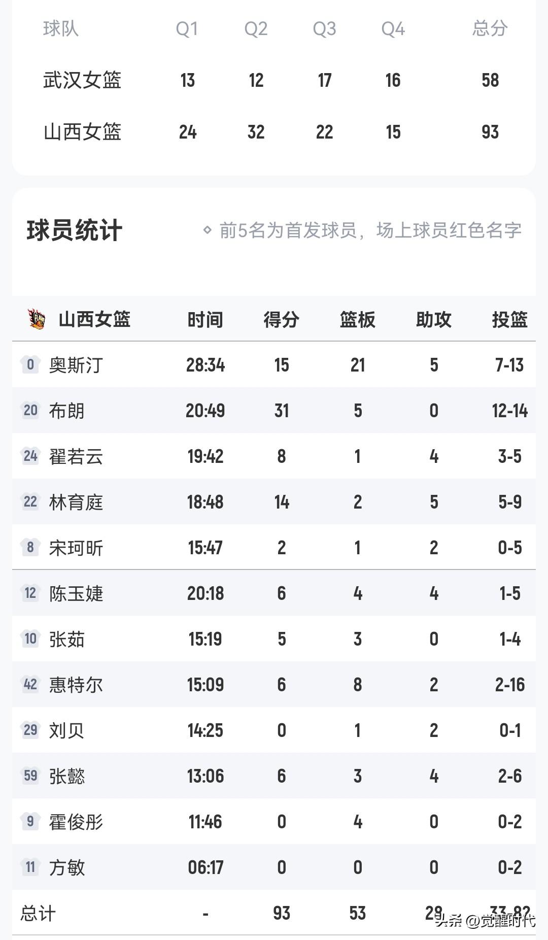 山西女篮93-58武汉女篮 这轮山西女篮是过关了 估计也练不好😄