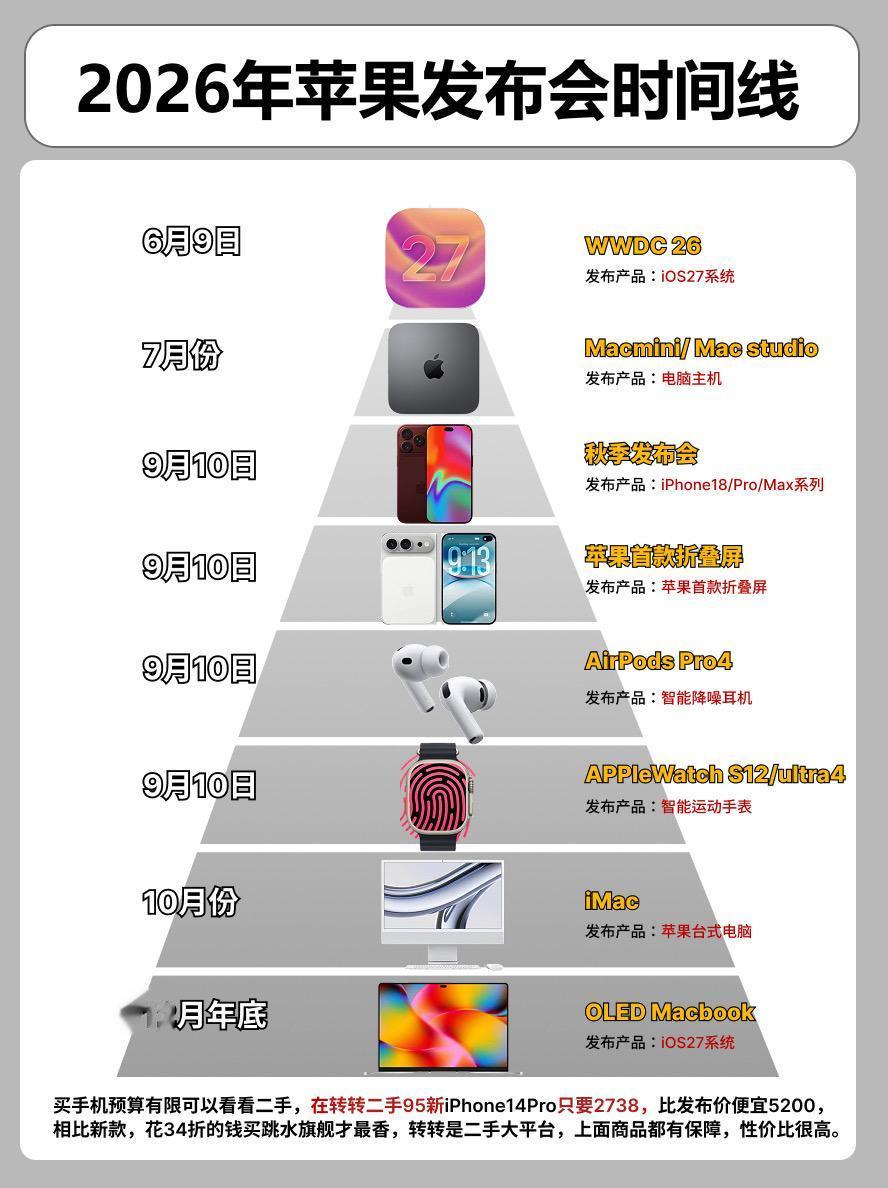 2026年苹果发布会时间线。ios27iphone18prowwdc2026 iphone折叠屏计划 数码科技 手机手机推荐iphone14pro