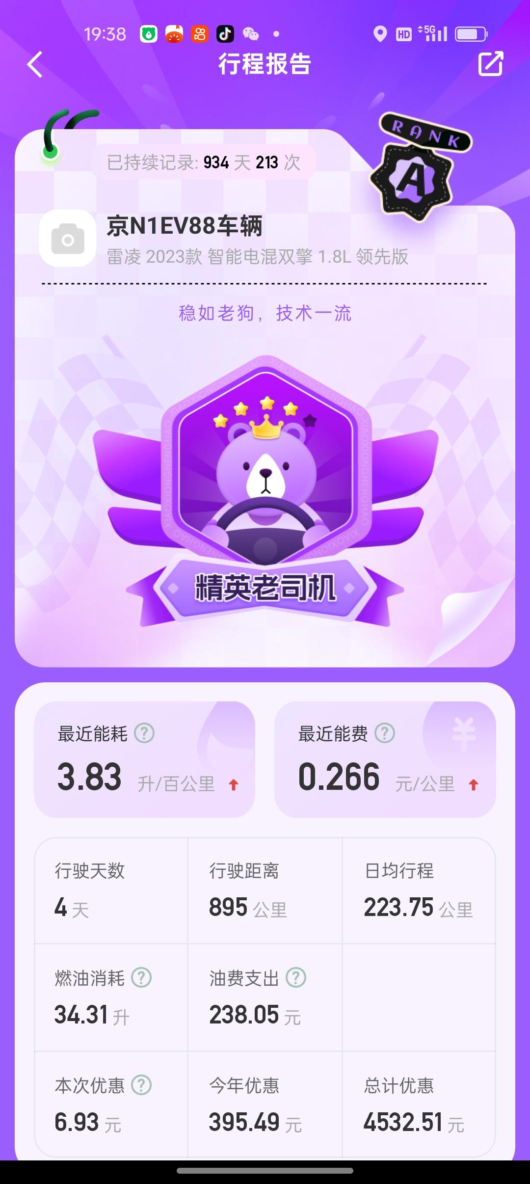 北京油价涨了,一升汽油8.57元,我的丰田雷凌双擎汽车,百公里油耗3.83升,一公里油费0.266元。丰田 雷凌
