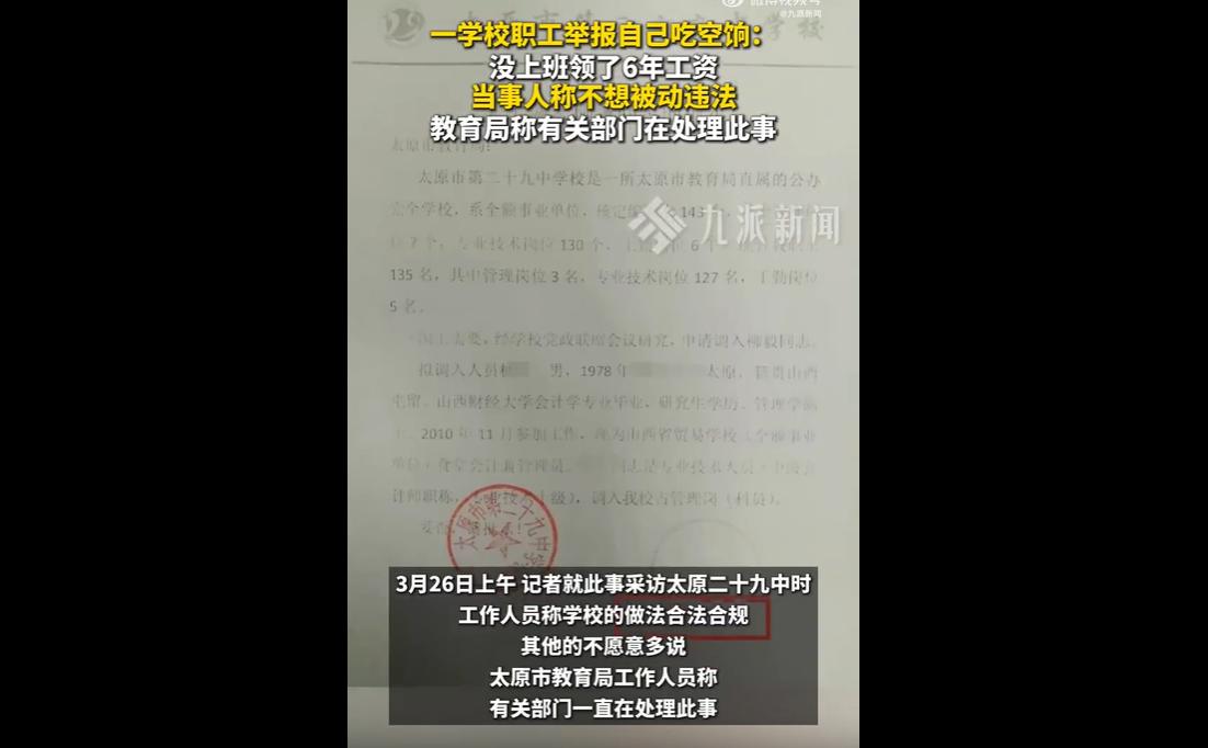 近日,山西柳先生举报自己吃空饷6年,其2019年违规调入太原二十九中后未正常工作,却被动领工资。 他多次反映违规调动问题、举报自己,称不想被动违法,相关部门均未妥善处理,学校称自身做法合规。 梳理事件脉络,柳先生的遭遇令人唏嘘。 2019年的调动存在诸多违规之处:审批盖章空白、批准日期早于申请日期、专业技术等级填写错误,这些明显的漏洞,本应在调动审核环节被及时发现并纠正。 而柳先生发现问题后,主动要求退回原学校、不再到校上班,此后6年多次向相关部门反映情况,甚至举报自己,核心诉求只是不想被动违法,这份坚守法律底线的意识,难能可贵。 最值得关注的,是这6年里的监管空白。柳先生6年未正常上班,却能持续被动领取工资,期间无人追查、无人监管,即便他多次举报、起诉相关部门,也只得到解决生活困难的回应,违规调动的核心问题始终被推诿扯皮,未能得到实质性处理。 这种监管缺位,不仅造成了公共财政的浪费,也反映出部分部门工作流程的不规范与责任意识的缺失。 太原二十九中称自身做法合法合规,却未对违规调动的疑问作出详细解释;太原市教育局表示相关部门一直在处理此事,却未明确处理进度与结果,这种模糊的回应,难免让公众产生疑问。 柳先生的举报,不仅是为了自身摆脱“被动违法”的困境,更无意间揭开了部分单位在人员调动、日常监管中的漏洞,为相关部门敲响了警钟。 吃空饷不仅浪费公共资源,更违背了公平公正的原则,而违规调动、监管缺位则是滋生此类问题的重要原因。 此次事件中,若调动审核环节严格规范,若日常监管及时到位,若相关部门能正视问题、主动作为,而非互相推诿,就不会出现6年空饷无人管的尴尬局面,柳先生也无需通过举报自己来维护自身权益。