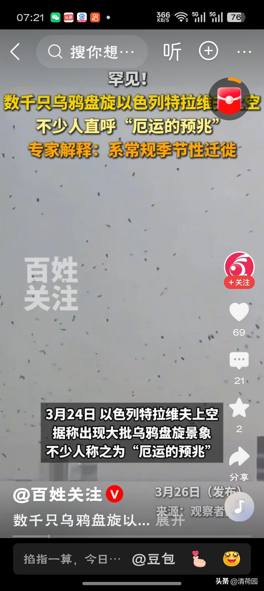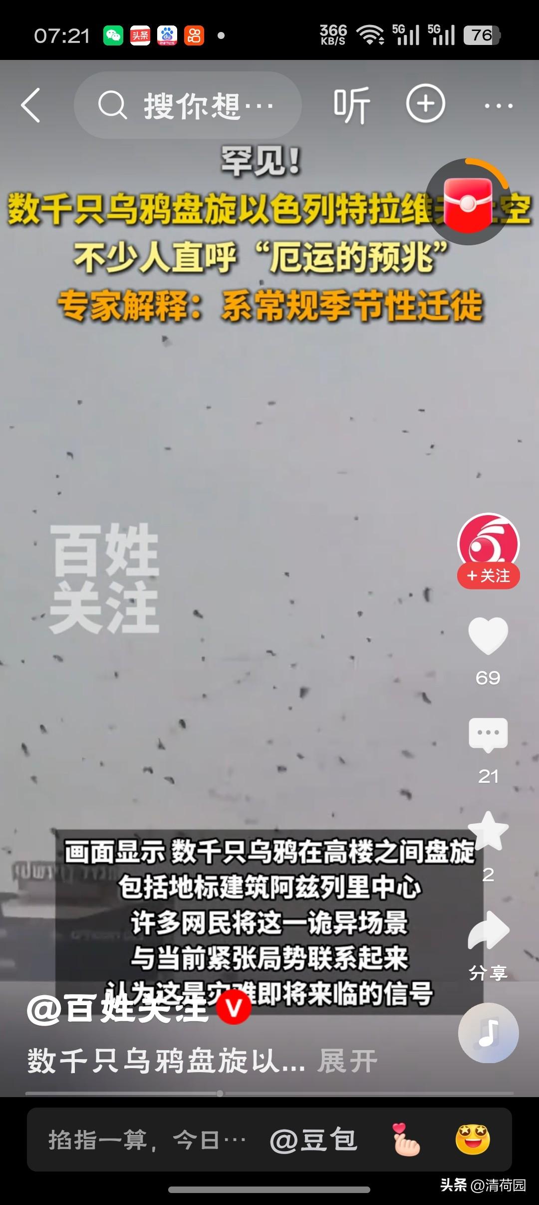 特拉维夫上空和街头出现大量乌鸦"特拉维夫的乌鸦黑压压落满天,一声‘恶运’的啼鸣,倒比导弹预警更让人脊背发凉——这哪是鸟群,分明是战云在人间的投影。"