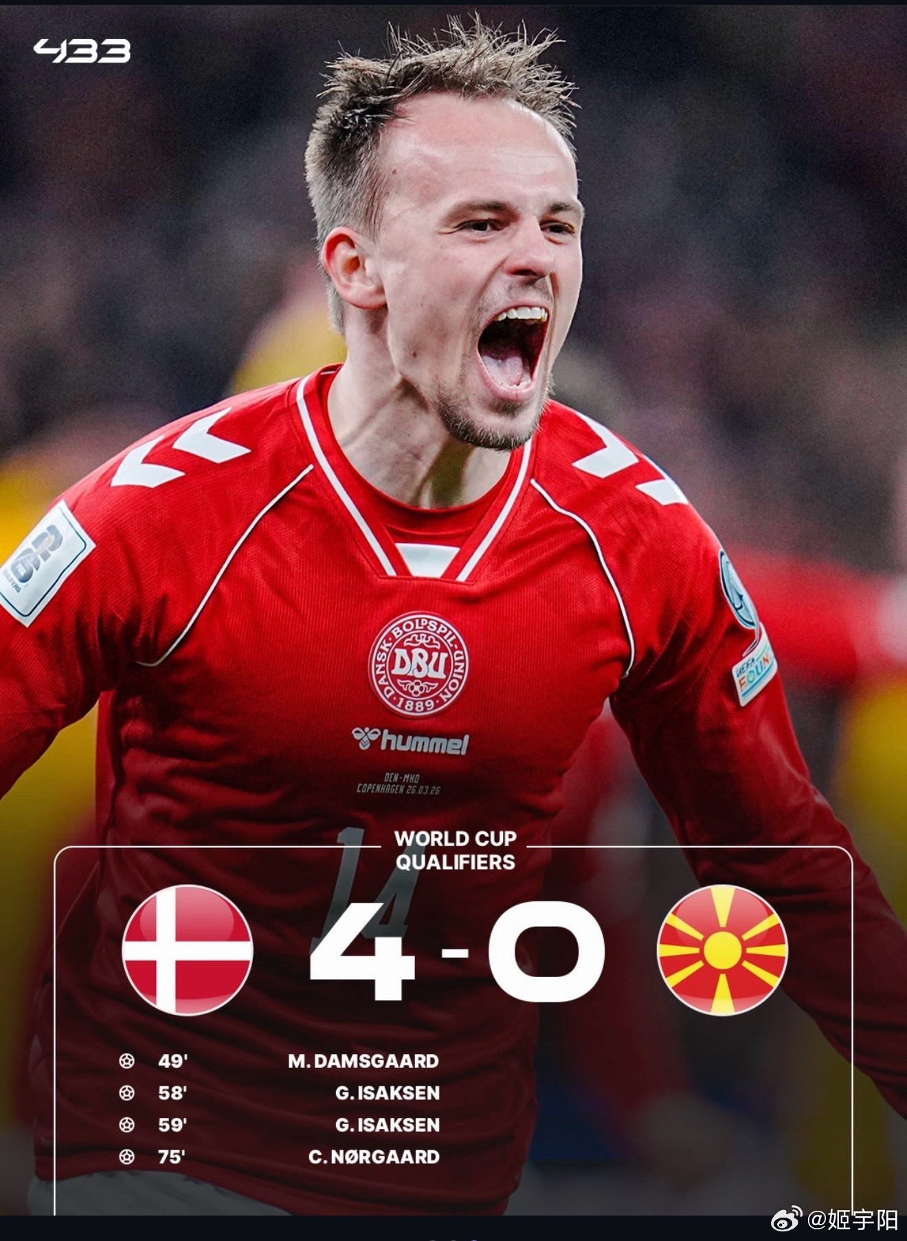 激烈残酷的欧洲区附加赛半决赛全部结束!意大利队依然活着!而三名中超外援所在的球队同时止步。罗马尼亚 0 比 1 输给土耳其,云南外援布尔克首发打满全场, 71 分钟替补登场的斯坦丘泪洒球场。北马其顿0 比 4 输给丹麦,大连英博另一名外援阿利米 64 分钟替补上场。