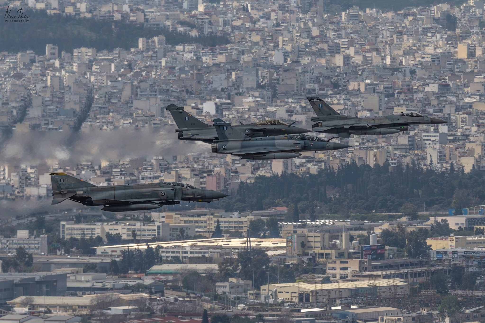 希腊空军(HAF)庆希腊独立日编队第336“奥林匹斯”中队(336 Mira)F16C第332“鹰”中队(332 Mira)阵风第331“忒修斯”中队(331 Mira)幻影2000-5BG第338“阿瑞斯”中队(338 Mira)F4E AUP今日阵风今日幻影今日战隼永远的鬼怪军用飞机信息汇 Photo credit: Nick D. Dendris