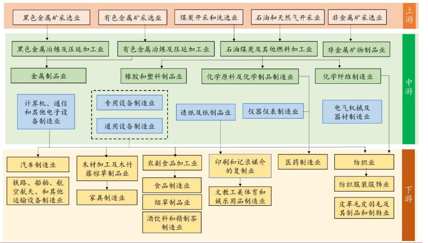 中国工业行业,按上游、中游和下游区分的图示,整理得比较完整和清晰,分享给大家。 对行业和公司进行投资,熟悉了解产业链上中下游的大概情况,还是会有所裨益到。例如,当你想投资一个中游行业,你发现上游资源品在涨价,而下游需求在萎缩导致终端价格下降,那这个时候你应该就明白:是否还是投资这个行业的好时机?