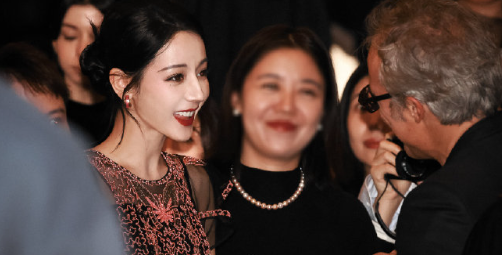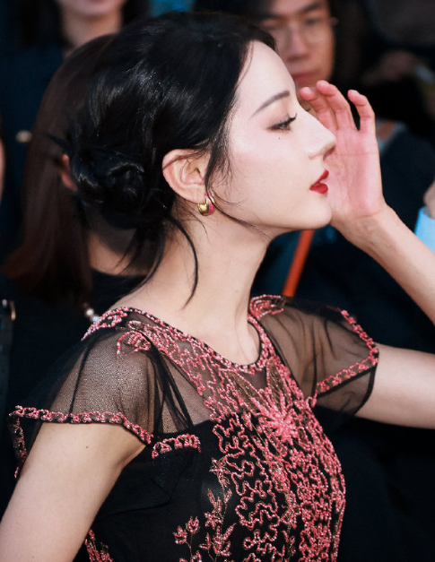 景甜壁纸级玫瑰红裙,肤白貌美人间富贵花
