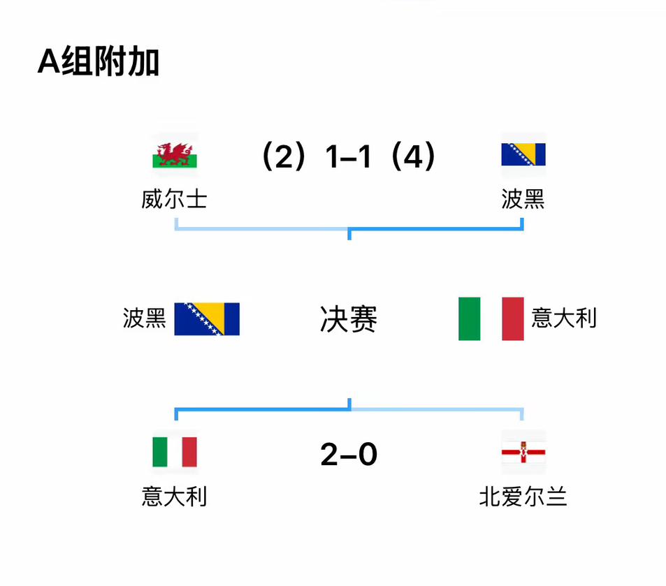 一步之遥!世预赛欧洲区附加赛半决赛结束,四冠王意大利主场2:0力克北爱尔兰如愿晋级决赛,将与波黑争夺一张世界杯门票。 意大利全主力出击,凭借托纳利和基恩的进球,意大利2:0取胜,没有掉链子。国际米兰的巴斯托尼、巴雷拉和迪马尔科首发出战,皮奥·埃斯波西托替补出战。 决赛将对决老将哲科领衔的波黑,期待意大利能再接再厉拿下比赛,进而顺利晋级世界杯,毕竟作为足球强国经不起连续三届无缘世界杯的痛击。同时也希望国际米兰的意大利国脚能继续稳定出色的发挥,为首次参加世界杯尽全力。