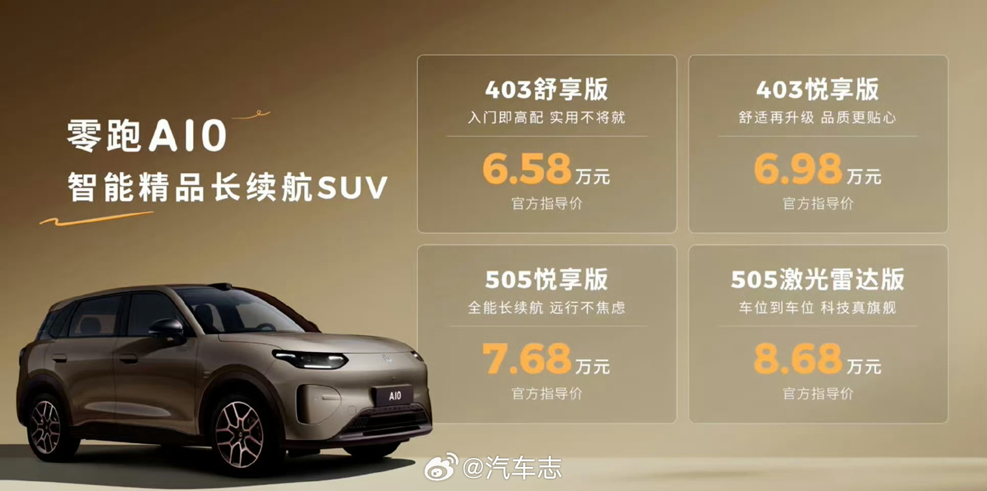 零跑A10直接上市了,没有预售价~6.58万起,8万多就能买到激光雷达版本。