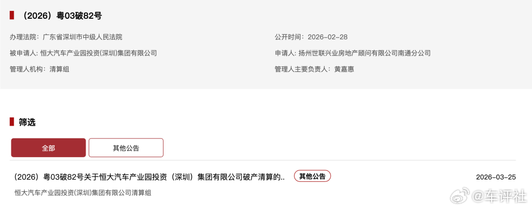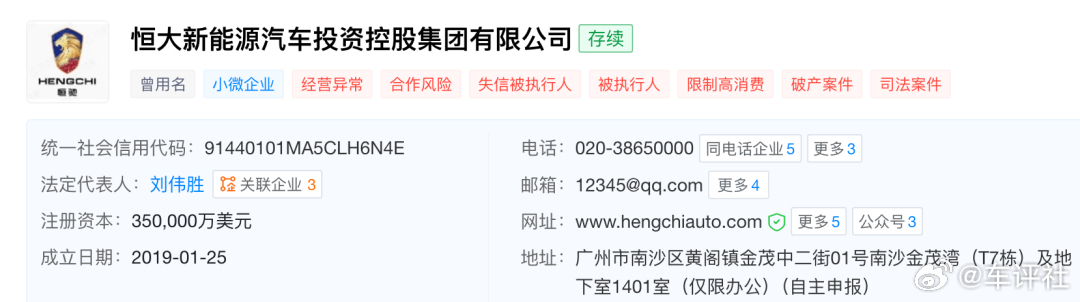 【恒大新能源公司被申请破产审查!】3月25日,恒大新能源汽车投资控股集团有限公司新增一则破产审查案件,申请人为广州农村商业银行股份有限公司华夏支行。恒大新能源汽车投资控股集团有限公司成立于2019年1月,法定代表人为刘伟胜,注册资本35亿美元,经营范围为在国家允许外商投资的领域依法进行投资。股东信息显示,该公司由恒大新能源汽车控股(香港)有限公司、恒大恒驰新能源汽车(广东)有限公司共同持股。车评观察