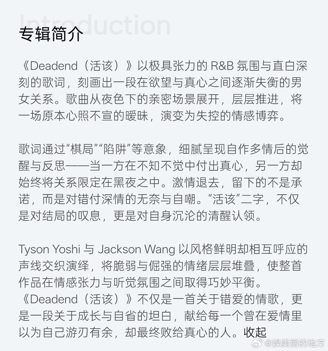 王嘉尔久违的中文歌 王嘉尔久违的中文情歌杀伤力MAX!《Deadend(活该)》与Tyson合唱超默契,节奏里藏着复杂心绪,太上头✨