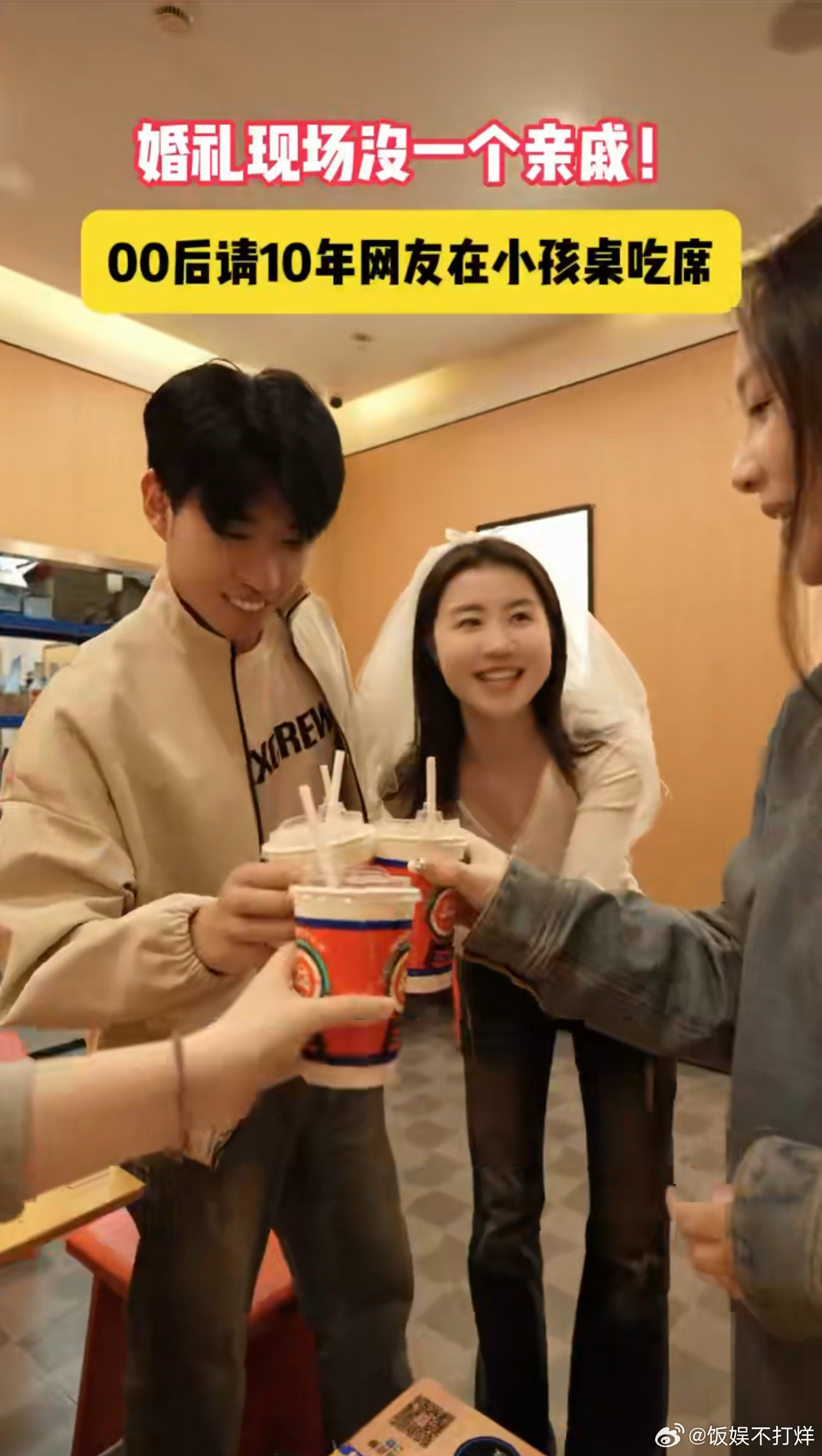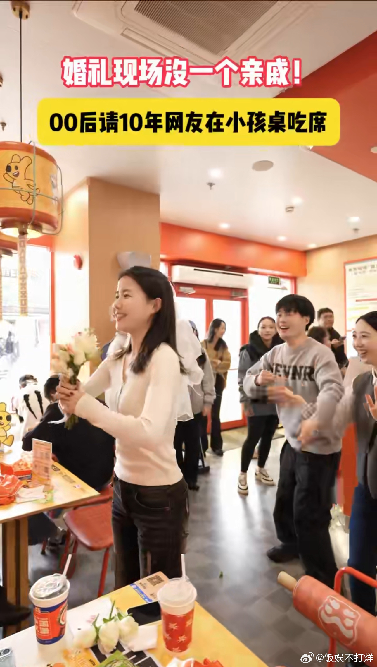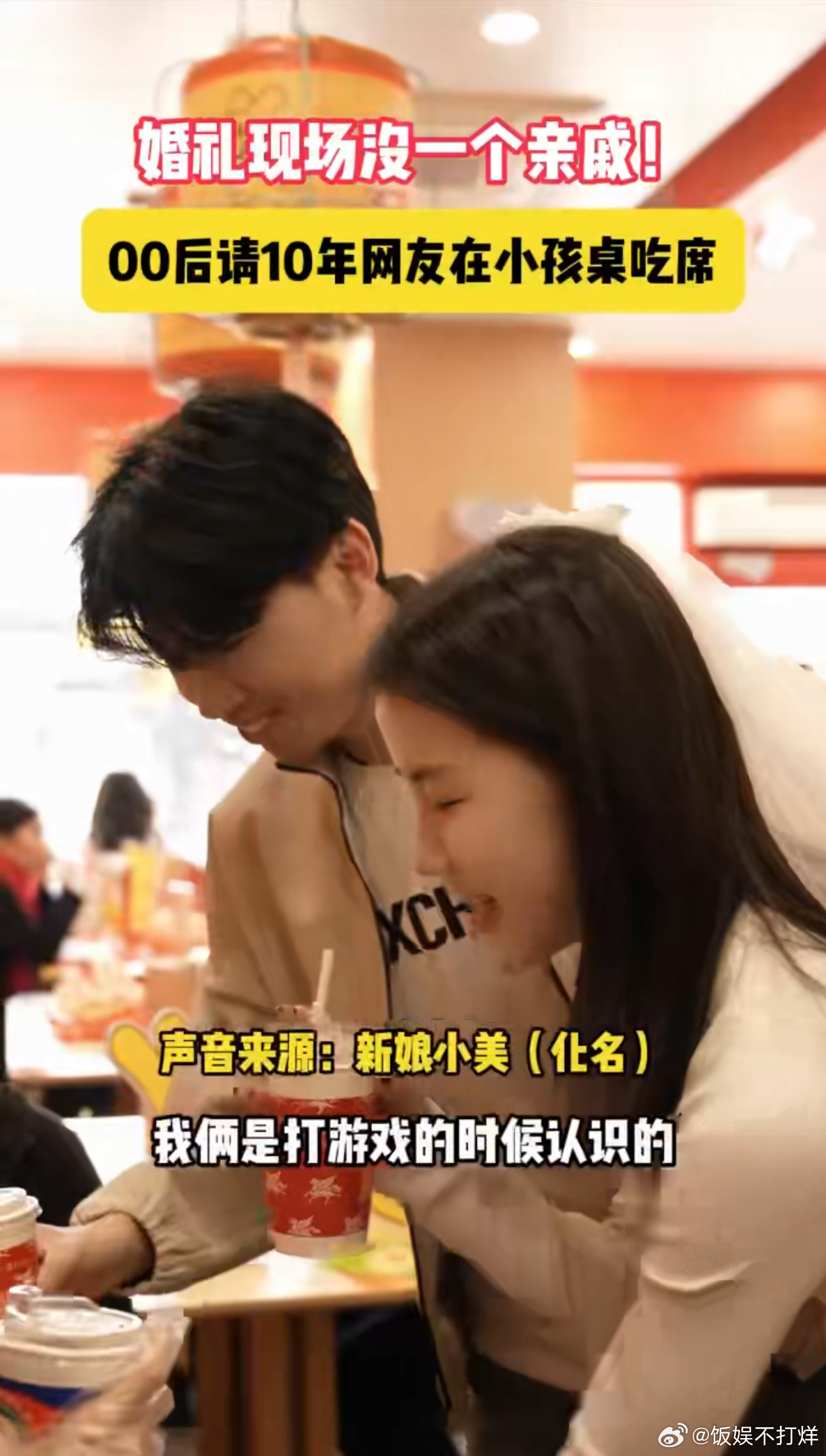 00后结婚请10年老网友小孩桌吃席 谁能不羡慕这样的缘分,00后情侣从游戏结缘奔赴现实婚姻,婚礼特意邀请相识十年的网友入座专属宴席,简单的可乐敬酒藏着最真挚的情谊