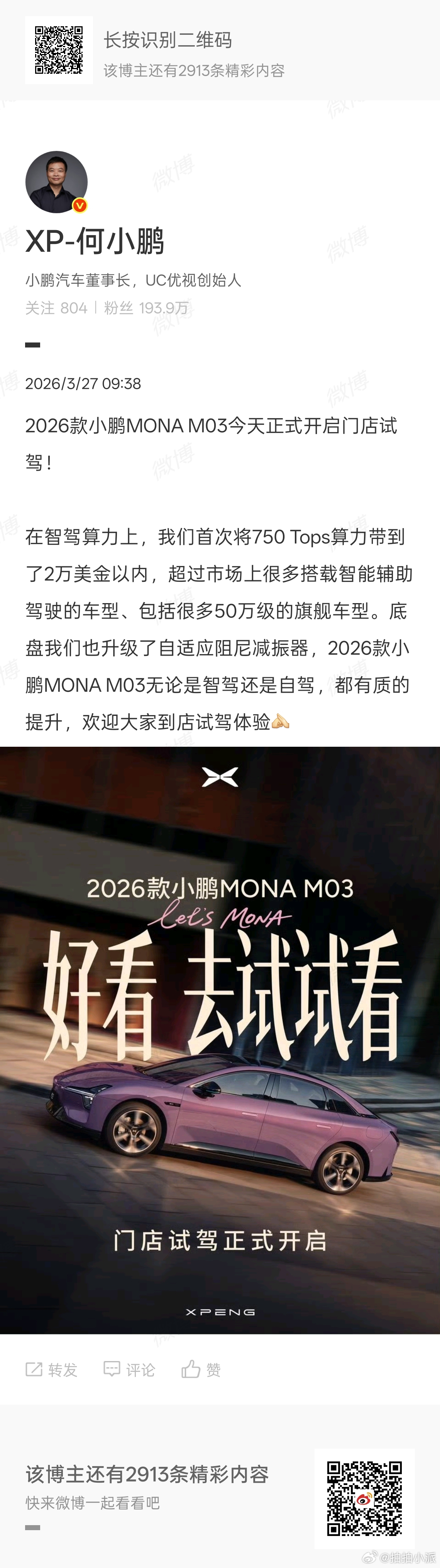 uu们,2026款小鹏 MONA M03今天正式开启全国门店试驾了~