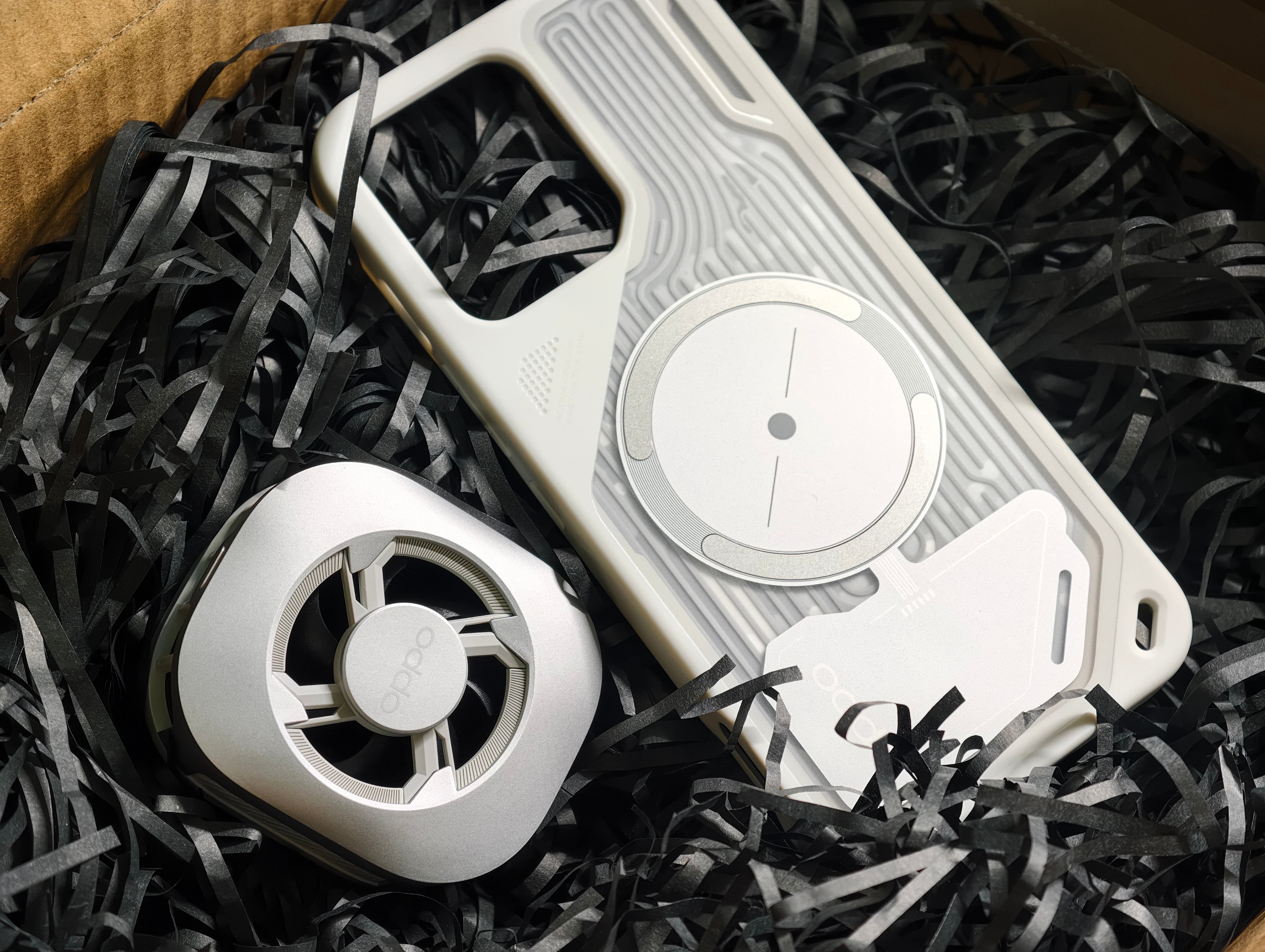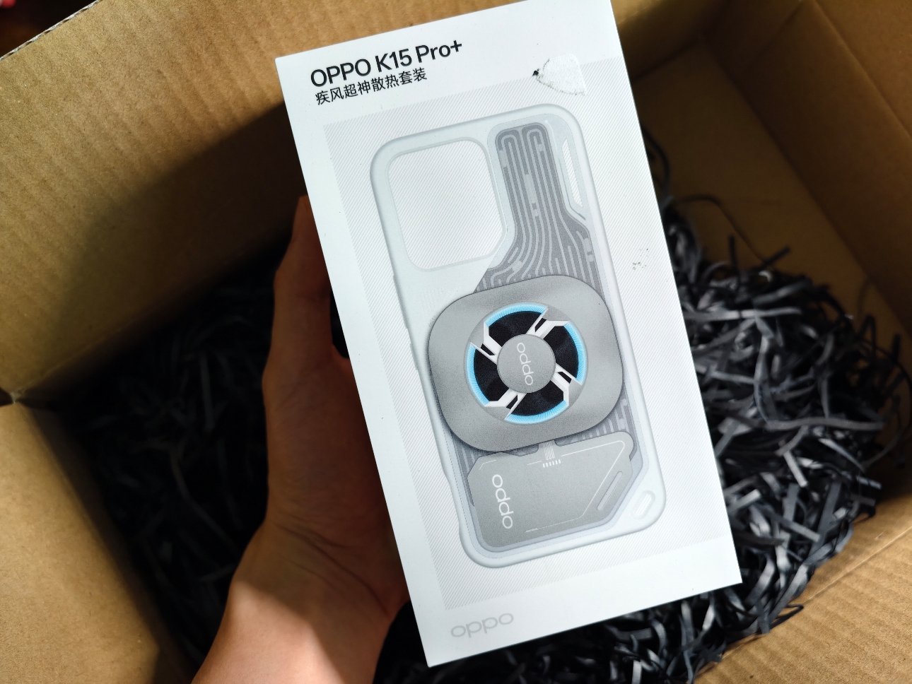 OPPO&得物 K15 Pro系列邀请函,这是K15 Pro+专用的散热磁吸手机壳,还有一个磁吸式主动散热背夹。