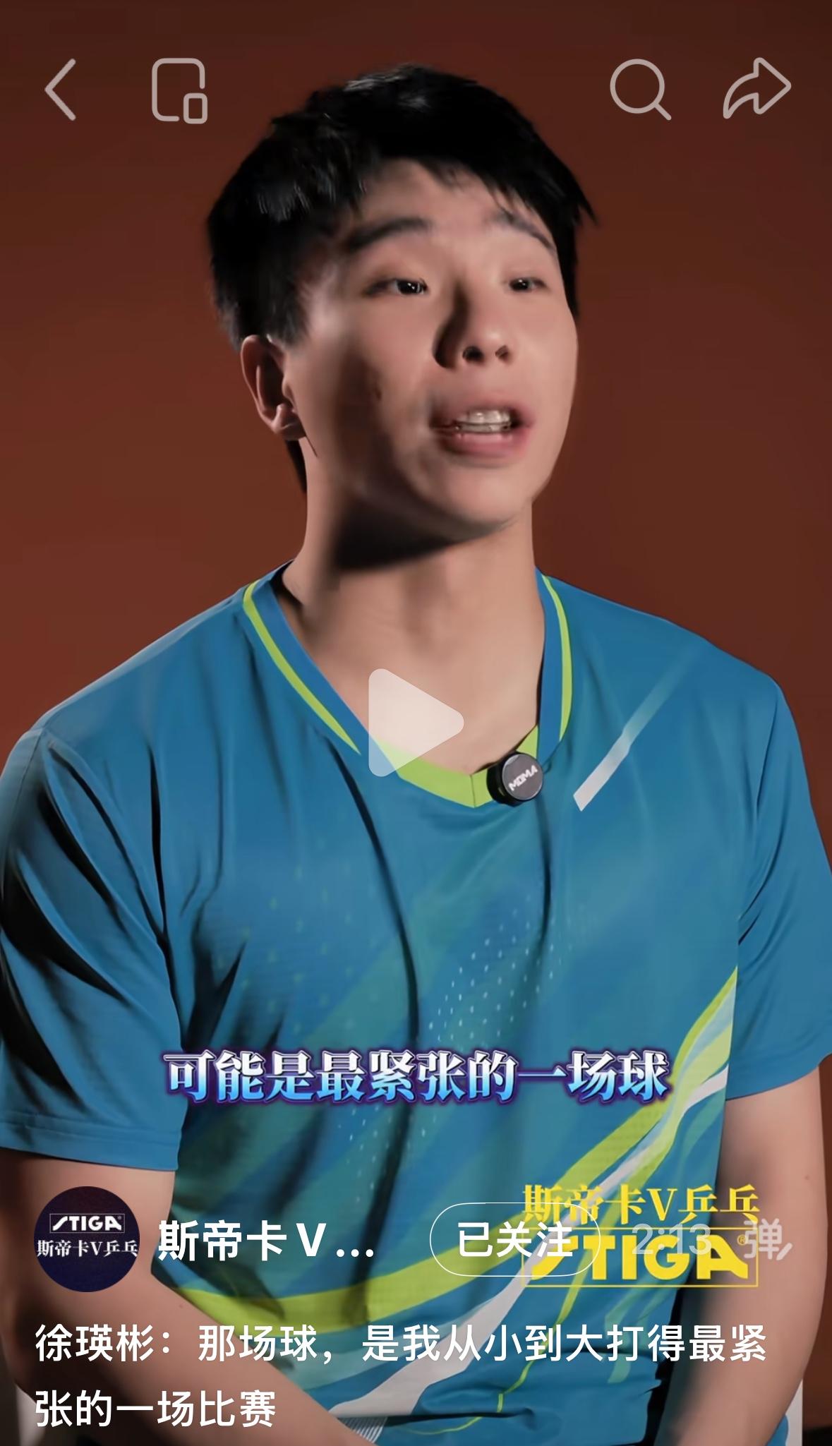 徐瑛彬说心里话,混团与安东的比赛:是从小到大最紧张的一场球! 3月27日,斯蒂卡乒乓放出徐瑛彬 专访,谈起自己首次参加成都混团, 徐瑛彬表示: “那是我从小到大打的最紧张的一场球,对手给我的压力很大, 那场球我并不是发挥得不好, 可能自己的心态对大赛环境的陌生, 那种恐惧和担心更多一些, 安东卡尔伯格的技术和大赛经验 更多一些, 有些时候过于想去证明自己, 往往这种想法会适得其反, 不不会给你带来期待的结果, 混团就是一局一分, 我自己就输了三分, 还是会非常自责, 为什么自己一局都没有赢, 代表中国队出战, 你不能说对手比你强, 只能说你还是不够强, 只能找自己的问题, 我觉得自己很多方面都需要去加强, 包括技术和心态!” 徐瑛彬说出了心里话, 这么多年的努力,💪 配的上世界冠军的头衔, 你已经尽力啦!