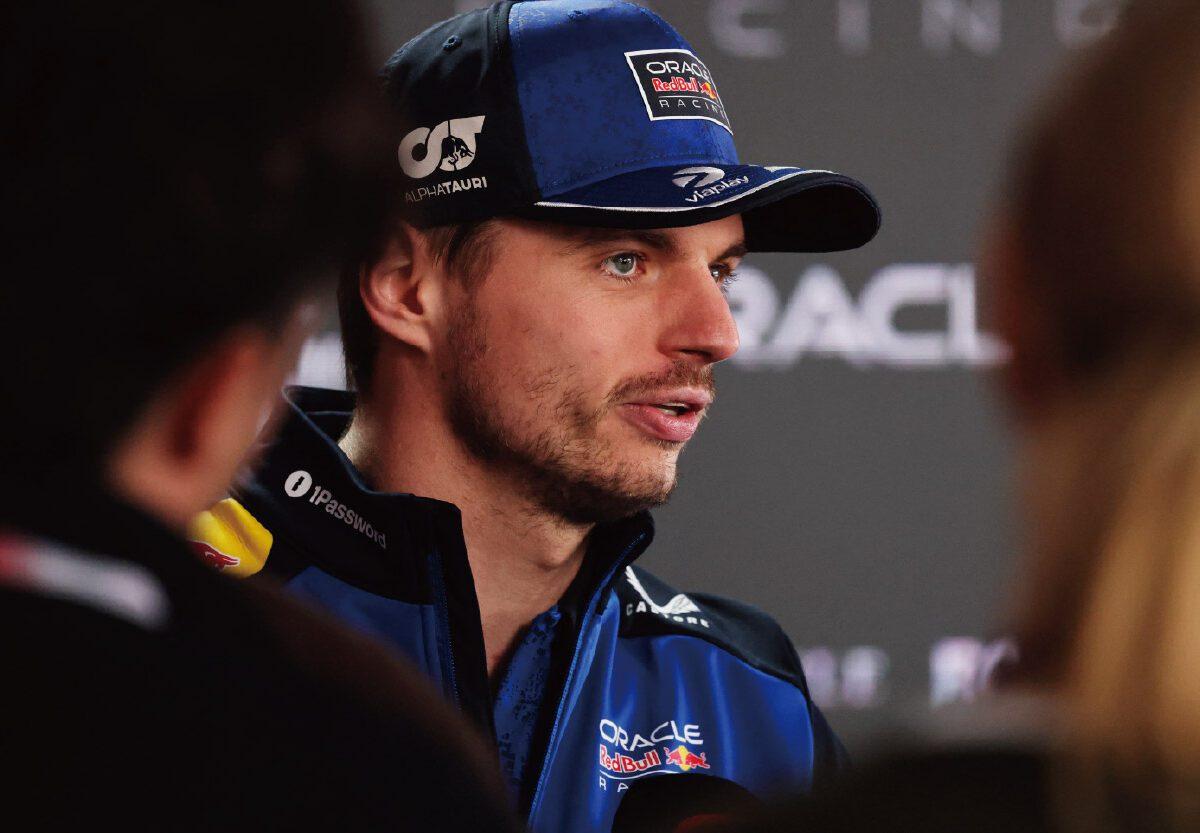 红牛车队车手马克斯·维斯塔潘在日本大奖赛记者会上,将《卫报》记者贾尔斯·理查兹请