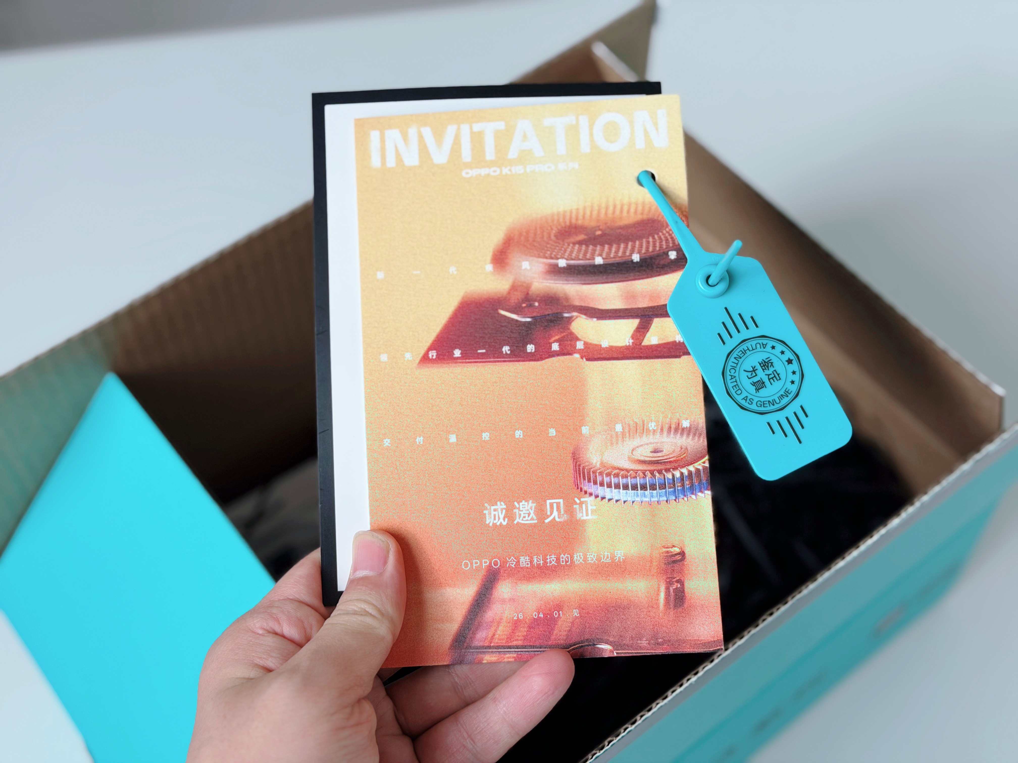 OPPO K15 Pro邀请函竟然是装得物盒子发过来的,里面的卡片还有防盗扣鉴定卡和微泵液冷散热壳和磁吸散热器,大家能看出来这款新机主打什么嘛?4月1日揭晓哈! 西安