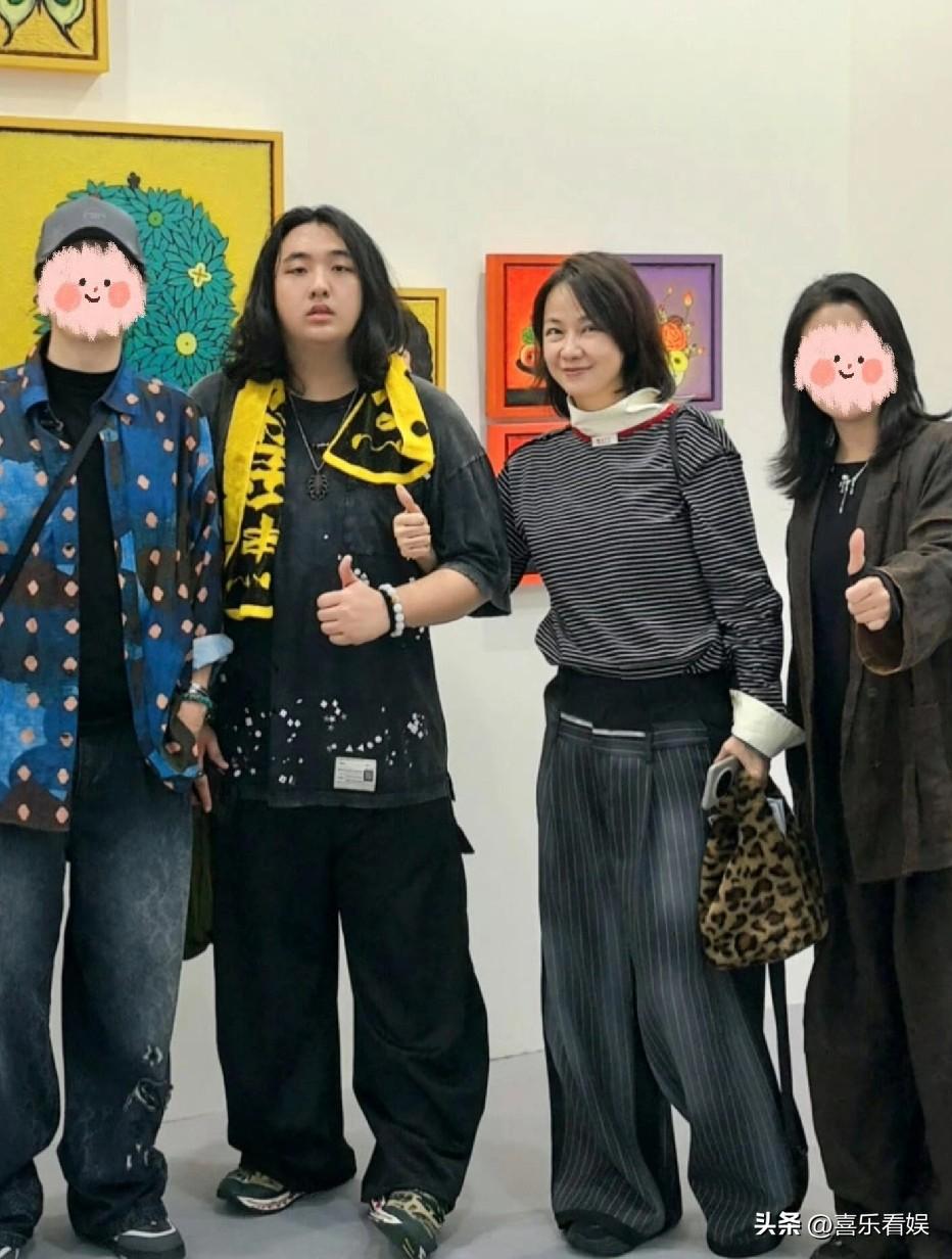 吴镇宇妻儿,最新亮相! 3月27日,吴镇宇的老婆王丽萍和儿子费曼同框看展的照片流出,让好多人都忍不住感叹:时间也太快了吧! 照片里,17岁的费曼个子窜得老高,都快比妈妈高出小半个头了。 费曼留着及肩长发,穿着黑T恤配黄围巾,看着有点随性又带点文艺感。 妈妈王丽萍就站在他身边,穿着条纹上衣搭百褶裙,难得出镜的她气质特别温婉。 笑起来眉眼弯弯的,完全看不出年纪,优雅感藏都藏不住。 网友们看完,纷纷表示: “费曼这是吃了增高药吗?长这么高!” “王丽萍状态也太好了吧,还是那么温柔” “费曼的发型好有个性,像个搞艺术的小伙子” 其实王丽萍以前是模特,嫁给吴镇宇之后就很少公开露面了,一直很低调。 这次陪着儿子看展,看得出来母子俩感情特别好。 还记得以前在综艺里,费曼还是个软乎乎的小萌娃,现在都长成180的大男孩了,真的有点感慨时光飞逝啊。