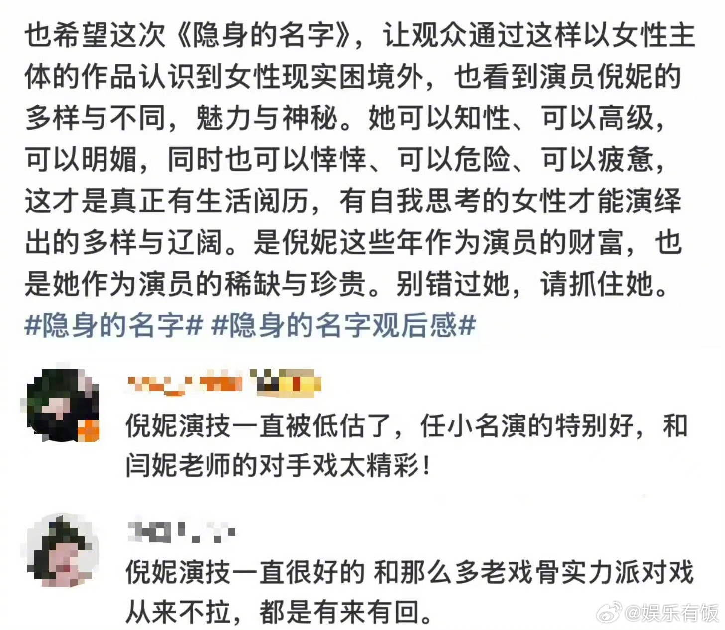 倪妮剧粉繁殖好快 从角色塑造到演技发挥,倪妮永远让人放心!把人物的细腻与坚韧演绎得淋漓尽致。剧粉快速繁殖太真实了,好作品配好演员,入坑只需要一集的时间!倪妮