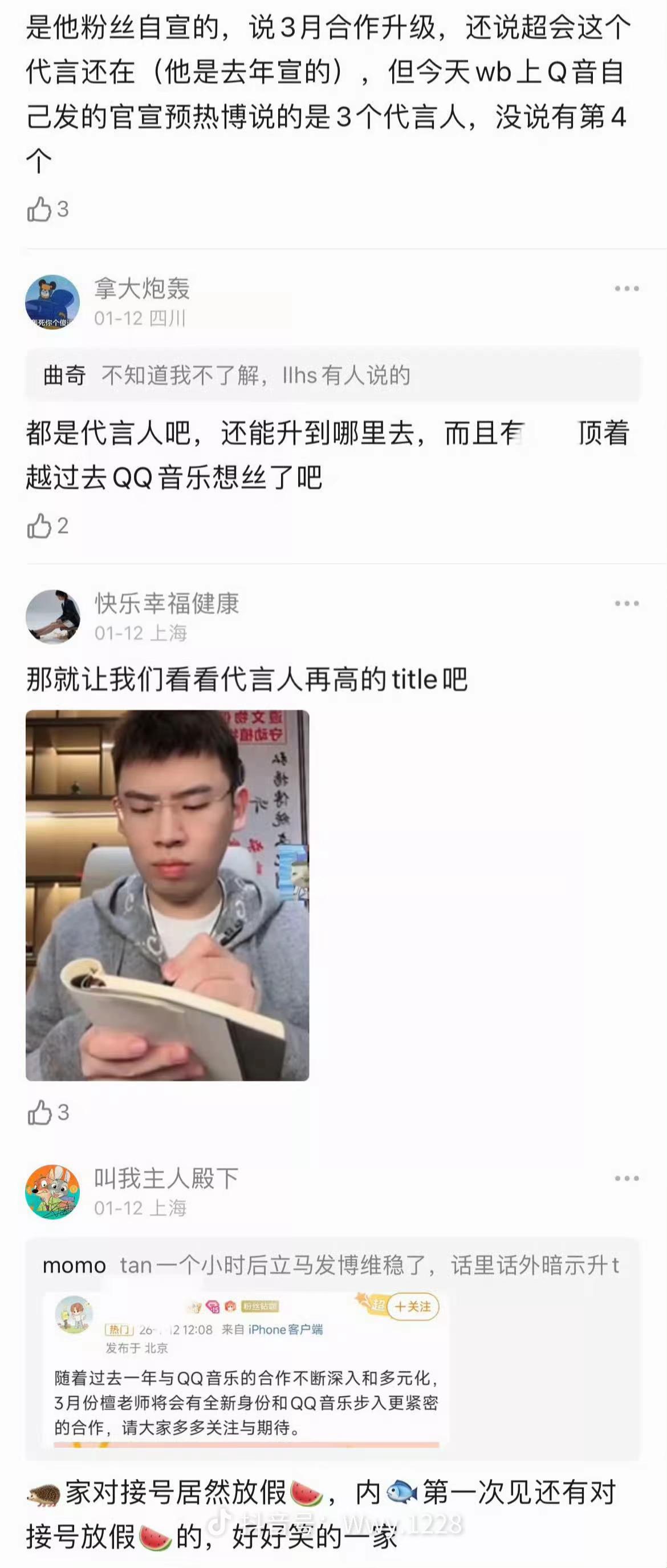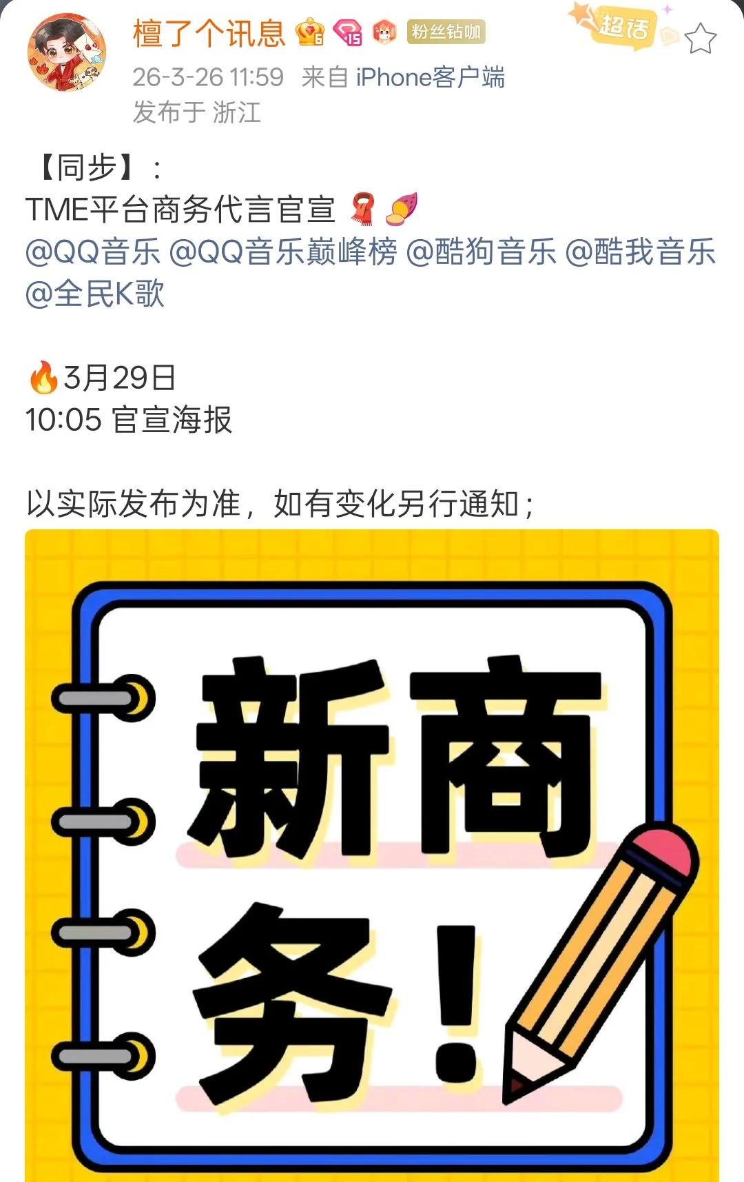 年前檀健次遭遇了铺天盖地的黑水,有些人嘲笑他的QQ音乐代言人掉了,还说对接号是放假瓜维稳,结果打脸来得如此之快!檀健次直接成了TME的平台代言人!什么含金量我不多说了!相当于全品牌代言人和分支代言人的区别。 当时这些话楼里闹腾的老欢实了“大家不要怕,有可能只是发一首新歌,TME是集团,怎么可能请代言人,退一步,就算请,也该是周杰伦王菲那样的啊!如果是真的,那他家不是压了三个代言人了吗?不止三个,还有其他平台也有代言人”! 原来如此,大家不要怕的梗是这么来的!笑掉大牙了,这么关注檀健次啊!他们消息怎么这么灵通,我们只是说深度合作,他们怎么就猜到要代言集团了他们也真敢想,挺好的,继续保持!想象力这块,粉丝还得向他们学习!! 很奇怪他们怎么1月份就在讨论了,比我们还操心!说实话我还真的不知道,以为就是深度合作!檀健次下家的咖位局限了他们的思维,每一句话都如此搞笑! TME是国内音乐平台的绝对龙头,之前从来没给过“集团代言人”这个title。第一个 = 开创者 + 标杆,相当于音乐平台领域的最高认可。 TME旗下坐拥:QQ音乐、酷狗音乐、酷我音乐、全民K歌,四大国民级音乐平台,覆盖中国在线音乐娱乐的头部版图。 从“子产品”到“母集团”,这一跃意味着檀健次的形象与整个生态深度绑定,资源层级、曝光量级、战略地位全面抬升! 平台敢把第一次给一个人,说明:数据稳、口碑好、无风险能扛品牌形象。这是官方盖章的头部艺人待遇,我看爽文时候的感觉都没这爽! 在流量明星扎堆的当下,能拿到平台级代言的,才是真正被市场认证的“硬通货”——檀健次,就是这张硬通货本身!