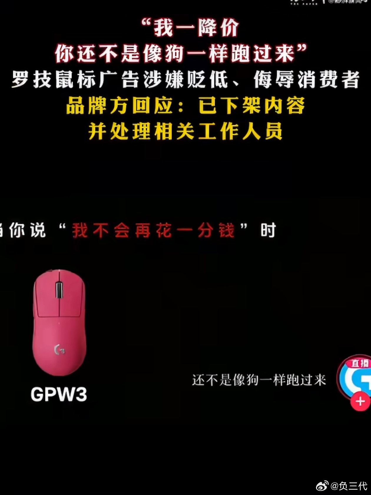 罗技就侮辱性广告致歉 “我一降价 还不是像狗一样跑过来”。这么大的品牌发视频不可能没有审核的,大概率就是他们自己的意思