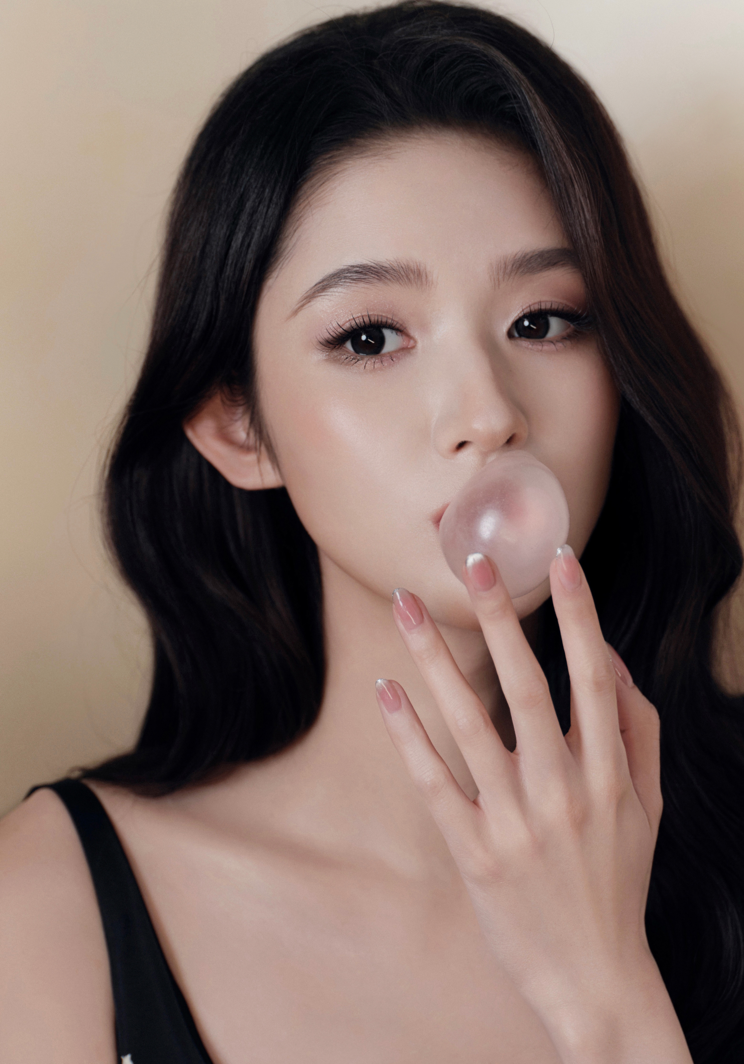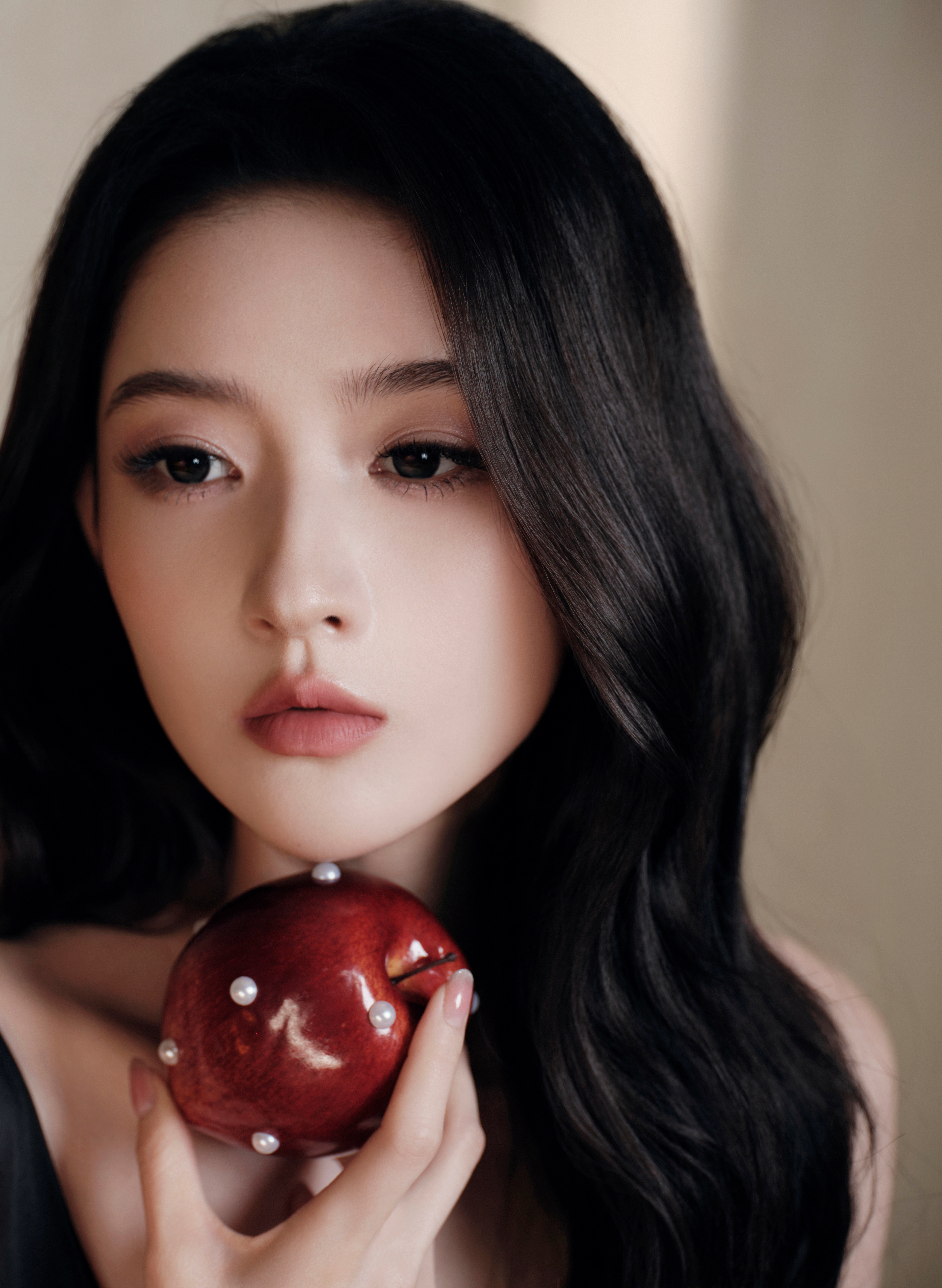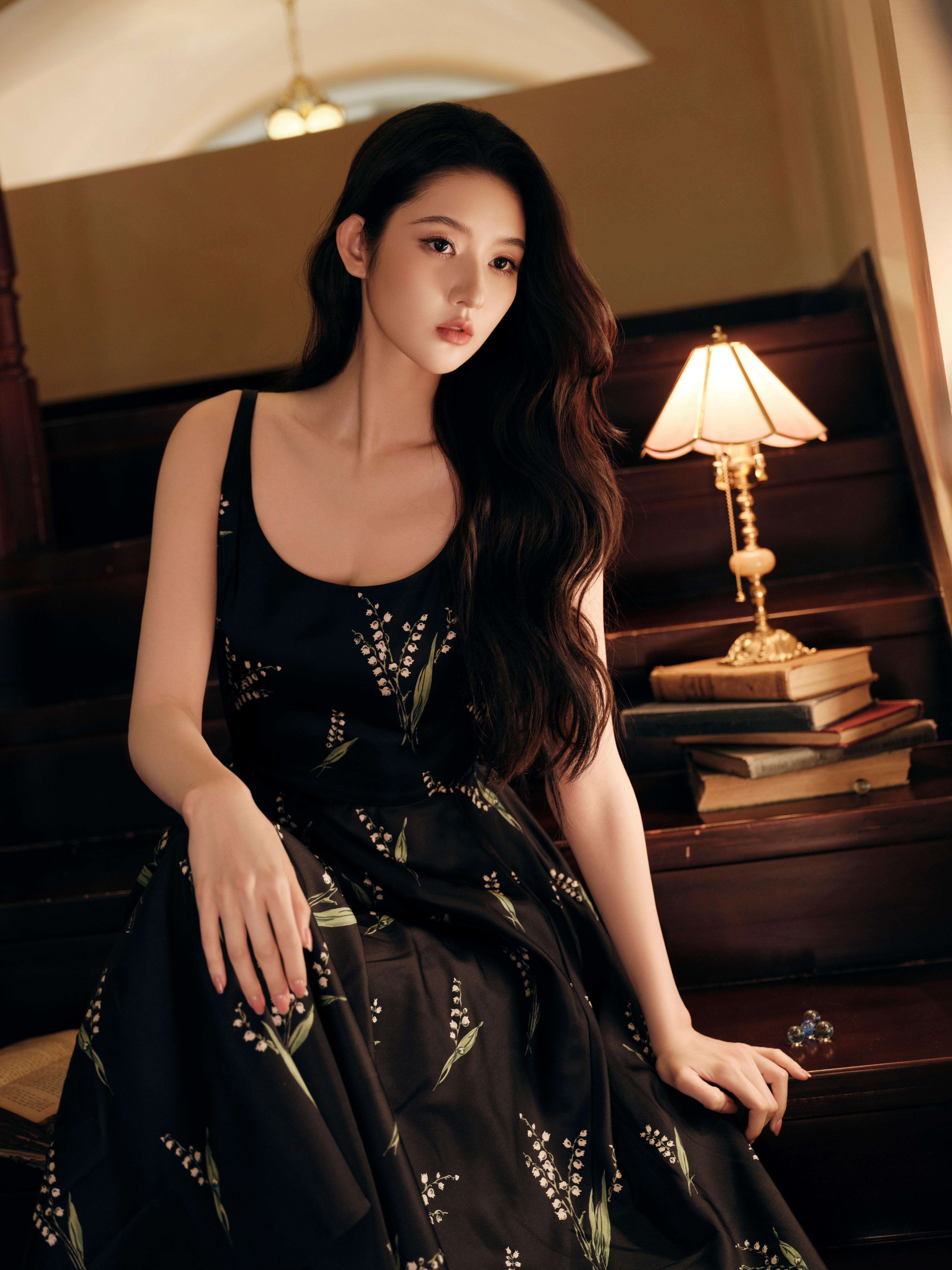 王玉雯 黑裙缀着铃兰碎影,红宝在颈间轻颤,白包衬得身姿愈发清艳。