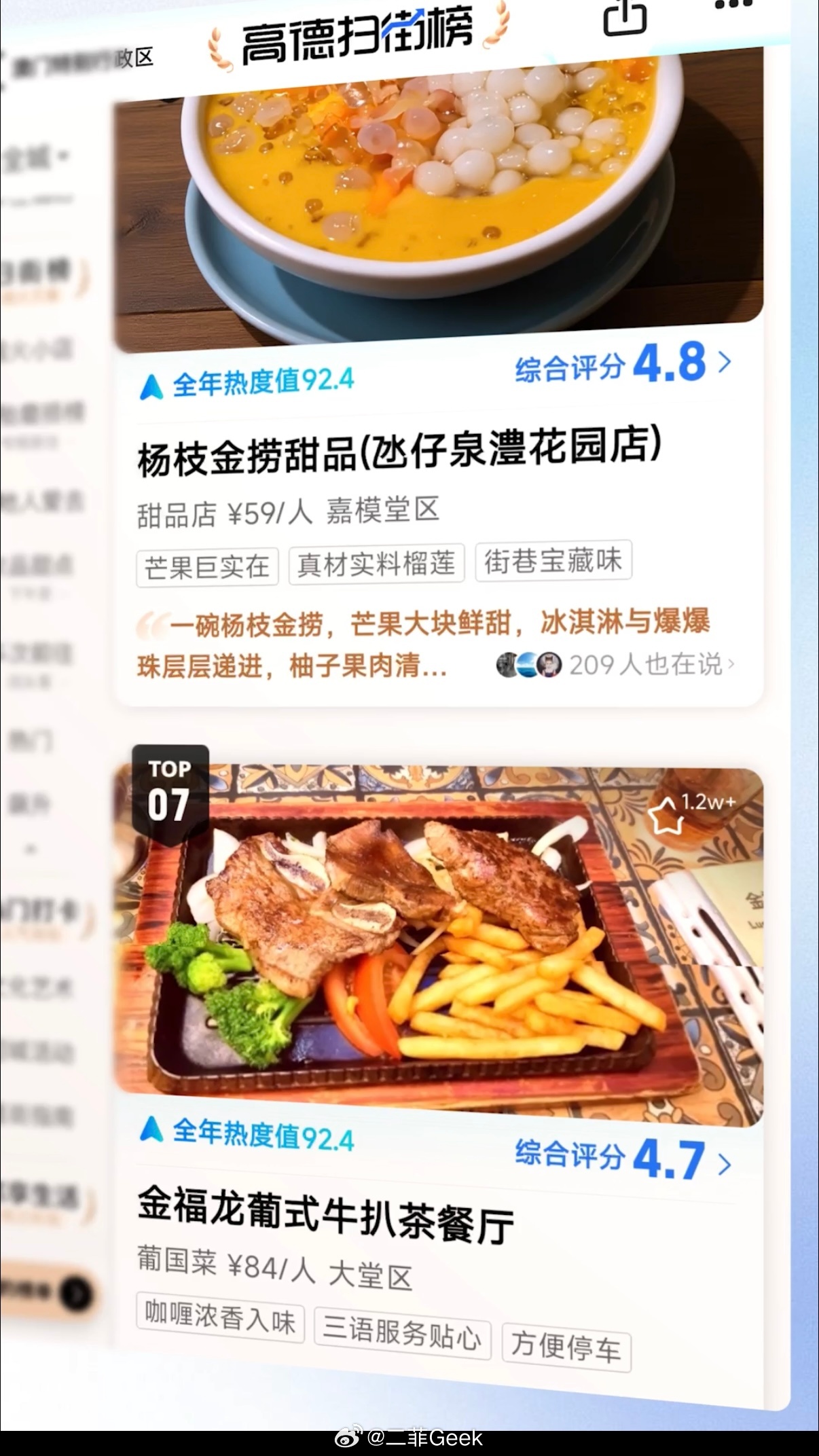 内地游客带火澳门百年老字号去澳门逛吃选手信,再也不用死磕攻略啦!如今澳门文旅发展越做越贴心,高德扫街榜更是成了逛澳门的实用帮手,跟着这份大家 “用脚投票” 的真实打卡榜单选店,闭眼冲基本不踩雷,再搭配飞行街景,出发前就能 360 度看清门店环境,提前摸清探店路线,逛吃体验直接拉满。数字化不仅让游客的澳门文旅之旅更便捷省心,也为当地百年老字号的焕新发展添了力,帮老牌子贴近年轻游客、解锁新客流,既提升了澳门文旅的体验感,又助力本土老字号持续焕新,以数字力量赋能澳门文旅发展,实现了游客体验与本土商业发展的双赢。澳门成为全球首个赛博城市