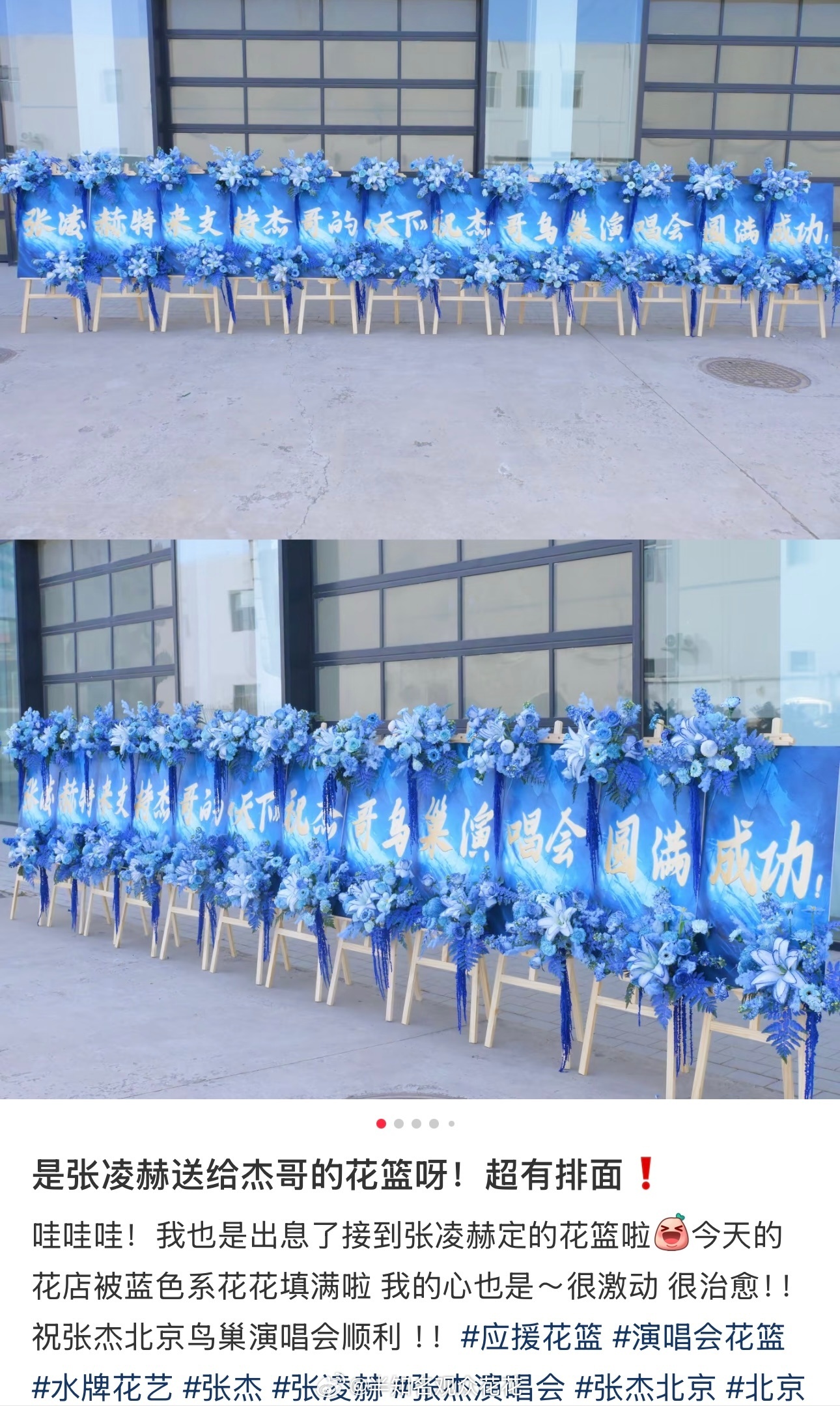 还特地选了蓝色张凌赫送张杰演唱会花篮张凌赫给张杰送演唱会花篮