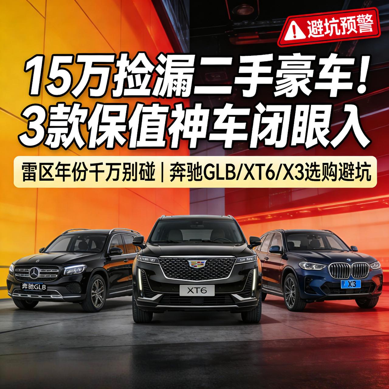 15万预算买二手豪车?这3款“保值神车”闭眼入,雷区年份千万别碰! 手握15万预算想圆“豪车梦”?翻看懂车帝指定车系清单,奔驰GLB、凯迪拉克XT6、宝马X3这三款“保值率跳水”的豪华SUV,绝对是二手车市场的“真香”选手。但别急着下单,这些年份和配置的雷区,踩中了分分钟变“修车大怨种”! 一、行情解读:豪车“骨折价”背后的真相 当前二手车市场里,豪华品牌新能源转型期的“阵痛”成了买家的红利。奔驰GLB 2020款1.3T版本,当年新车指导价29.28万,如今15万就能拿下准新车;凯迪拉克XT6 2020款28T豪华型,新车落地超45万,现在二手价直接腰斩到18万左右;宝马X3 2018款xDrive25i,当年加价提车的“神车”,如今16万就能开回家。但要注意:1.3T的GLB动力肉、XT6的2.0T通病多、X3的8AT变速箱漏油,这些“坑”你得提前知道! 二、多车比选:买“面子”还是“里子”? - 奔驰GLB:适合“颜控+家用党”。7座布局是最大亮点,但1.3T发动机拖后腿,高速超车像“老牛拉破车”,建议优先选2.0T版本(预算得加2万)。 - 凯迪拉克XT6:性价比之王。美系豪华配置拉满,BOSE音响+座椅加热全系标配,但2.0T发动机烧机油的概率比德系车还高,选车时务必查维保记录。 - 宝马X3:操控党首选。操控精准度吊打同级,但后排空间局促,且2018-2020款普遍存在变速箱渗油问题,建议加钱买2021款之后的车型。 三、导购评测:年款选购“避坑指南” - 奔驰GLB:2020款1.3T慎买(动力弱+通病多),2021款2.0T值得买(动力提升明显);2022款之后的改款车型变速箱逻辑优化,闭眼入。 - 凯迪拉克XT6:2020款28T豪华型性价比最高(配置够用+价格低),但要避开2019款(通病集中爆发期);2021款改款后烧机油问题改善,预算充足首选。 - 宝马X3:2018-2020款谨慎买(变速箱漏油高发),2021款之后的车型优化了变速箱密封件,值得买;2022款改款后内饰升级,闭眼入。 四、个人观点:别被“豪华标”绑架 买二手豪车,别被“奔驰/宝马/凯迪拉克”的标冲昏头脑。15万预算买GLB,不如加2万上XT6的2.0T版本,动力和配置的提升绝对值回票价;要是追求操控,X3的2021款之后车型才是真香选择。记住:二手车没有“完美车”,只有“适合你的车”——毕竟,省下的钱够加三年油,修车的时间可都是自己的啊! (注:以上价格及车况分析基于2026年3月市场行情,具体以实际车源为准。)【来自懂车帝车友圈】