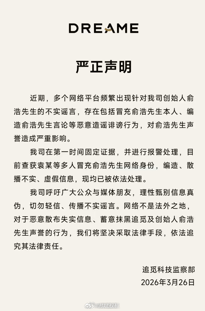 追觅已报警据说有人编造追觅CEO俞浩的微信截图恶意造谣。