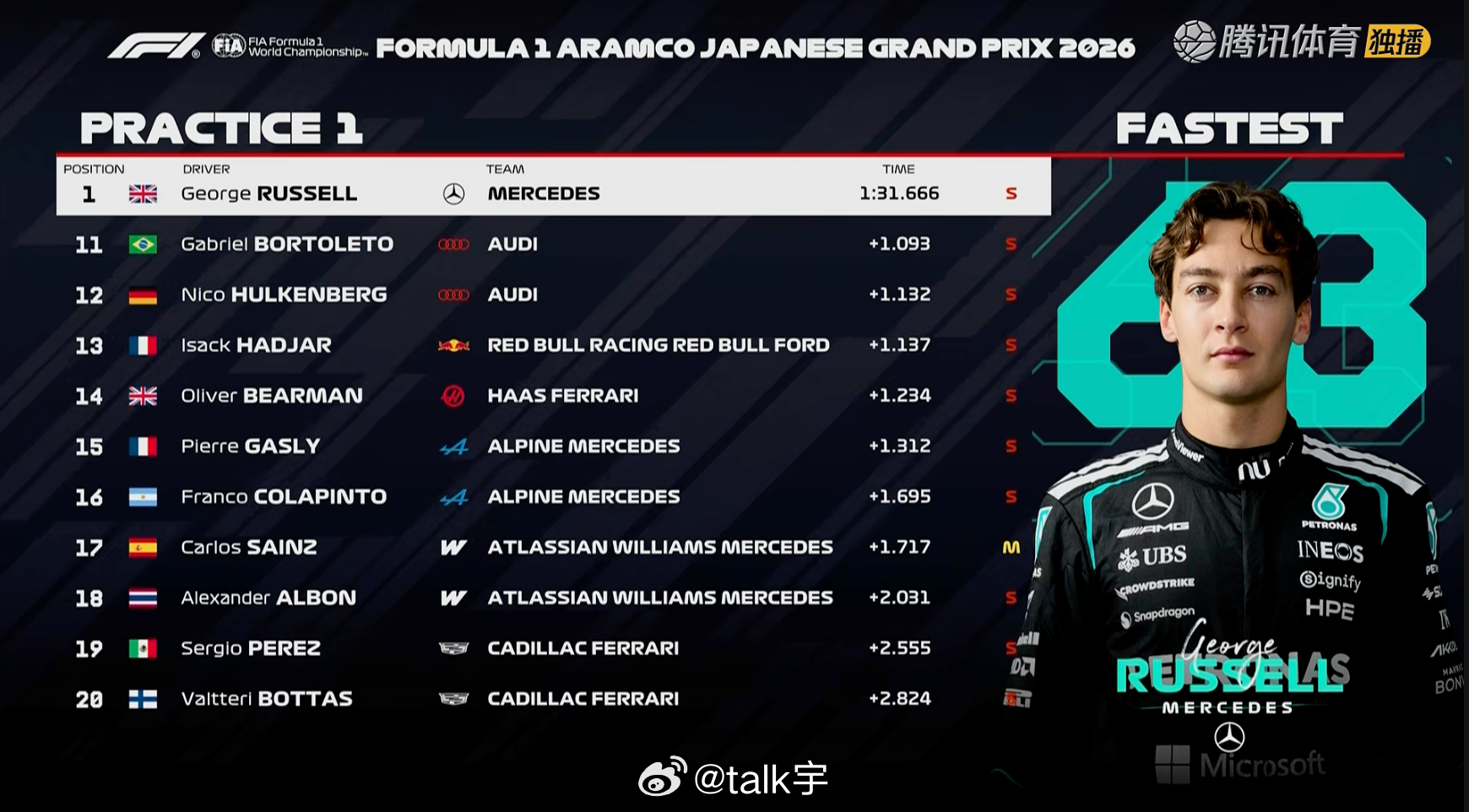 杰克克劳福德代替升级奶爸的头哥参与日本大奖赛一练F12026f1日本大奖赛