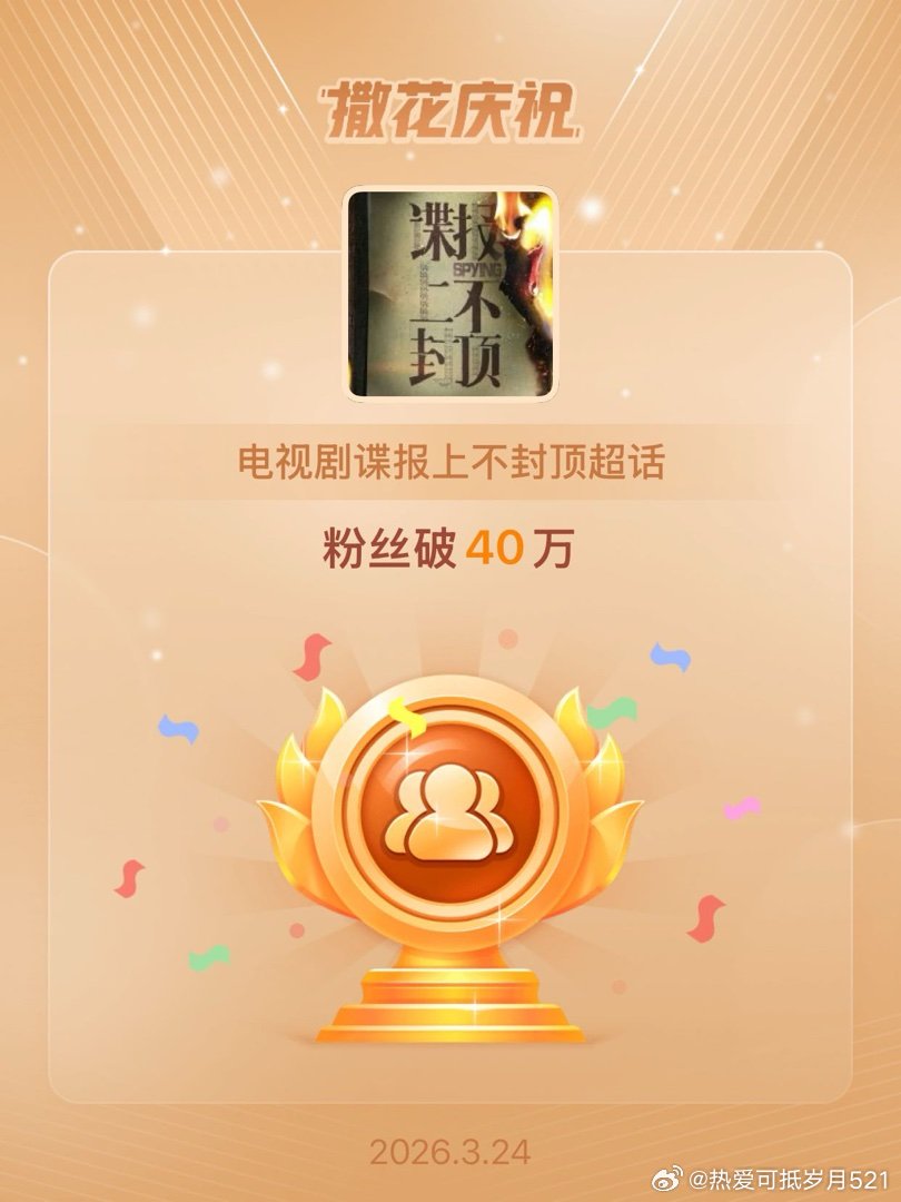 电视剧谍报上不封顶恭喜电视剧谍报上不封顶超话粉丝破40万