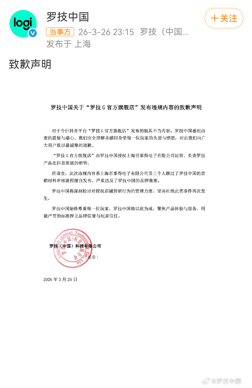 罗技就侮辱性广告致歉 说是个人员工跳过审核直接发?我怎么就不太相信呢。像狗一样跑过来真的太侮辱人了。可以替代你的牌子太多了,我选择不接受你的道歉,不会再买你们家的任何产品。如果道歉有用的话,是不是所有厂商犯了错,都道个歉就行了?真是可笑至极!
