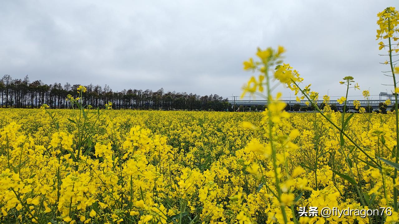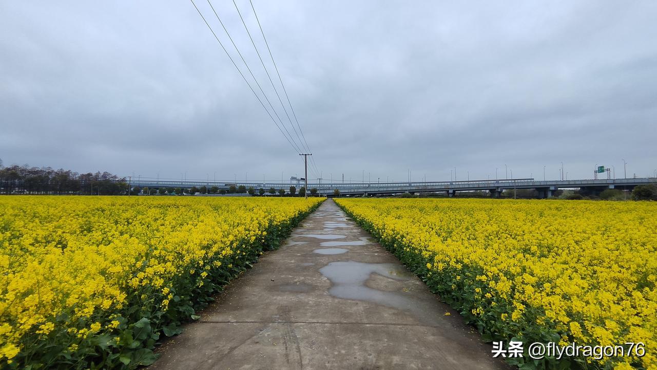 昨天开车路过一大片油菜花地,今天特意再过来拍照。 油菜花田小记 春风一拂,漫野的油菜花便热烈地开了。 金黄的花浪层层叠叠,顺着田埂铺向远方,与天空相接,像打翻了大自然的调色盘。微风掠过,花香清甜,细碎的花瓣轻轻摇曳,惹得蜂蝶翩跹。 站在花田之中,不必刻意摆姿,随意站定、回眸,或是轻拂花枝,都能定格成温柔的画面。 没有刺眼的阳光,阴天的油菜花田反倒多了几分温柔柔和的质感。 天空是淡淡的灰白,漫田的金黄却依旧明亮,不张扬、不热烈,安安静静铺展在眼前。风轻轻吹过,花穗微微晃动,带着湿润的青草气息,少了晴日的喧闹,多了一份沉静的温柔。 站在花田间拍照,光线柔和均匀,不必躲避阳光,也不用眯起眼睛。随手按下快门,画面干净又治愈,像是一幅自带温柔滤镜的油画。 阴天的春日,没有耀眼的光芒,却把这份属于油菜花的浪漫,悄悄藏进了每一张安静又好看的照片里。 一张照片,留住的不只是花海盛景,更是春日里最治愈的温柔与浪漫。 回去时忽然发觉车内的360影像在油菜花海包裹中行驶,这感觉实在是太棒了! 车子缓缓驶入花海,两旁的花田连绵不绝,一路向前延伸。金黄的花浪在微风里轻轻起伏,与远处的天色相融,空气里满是清甜的花香。 车轮轻碾过乡间小路,窗外是流动的金色画卷。不必追赶风景,只需放慢车速,任花瓣的芬芳随清风涌入车窗,让心情跟着这片烂漫花海,一同变得柔软而明亮。 一路向前,仿佛驶入了春天最盛大的温柔里。